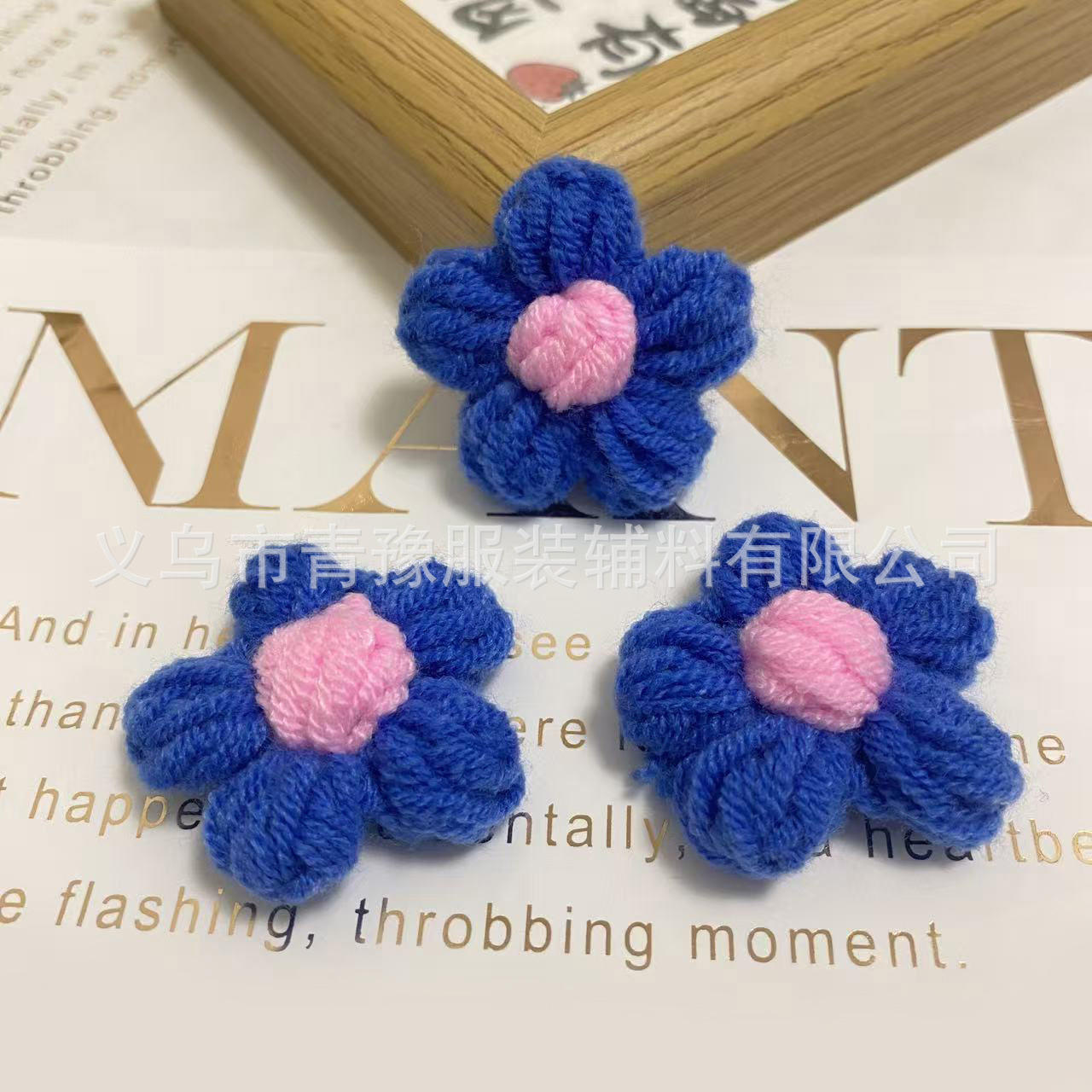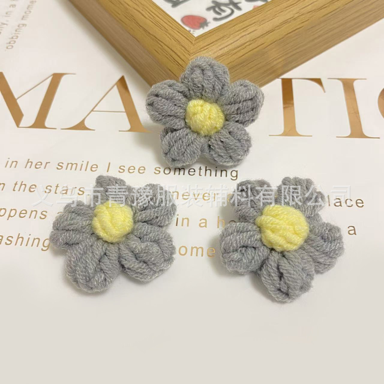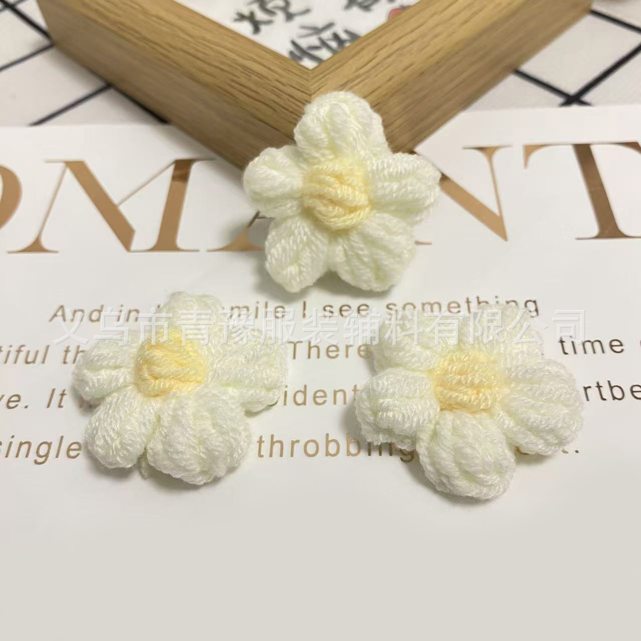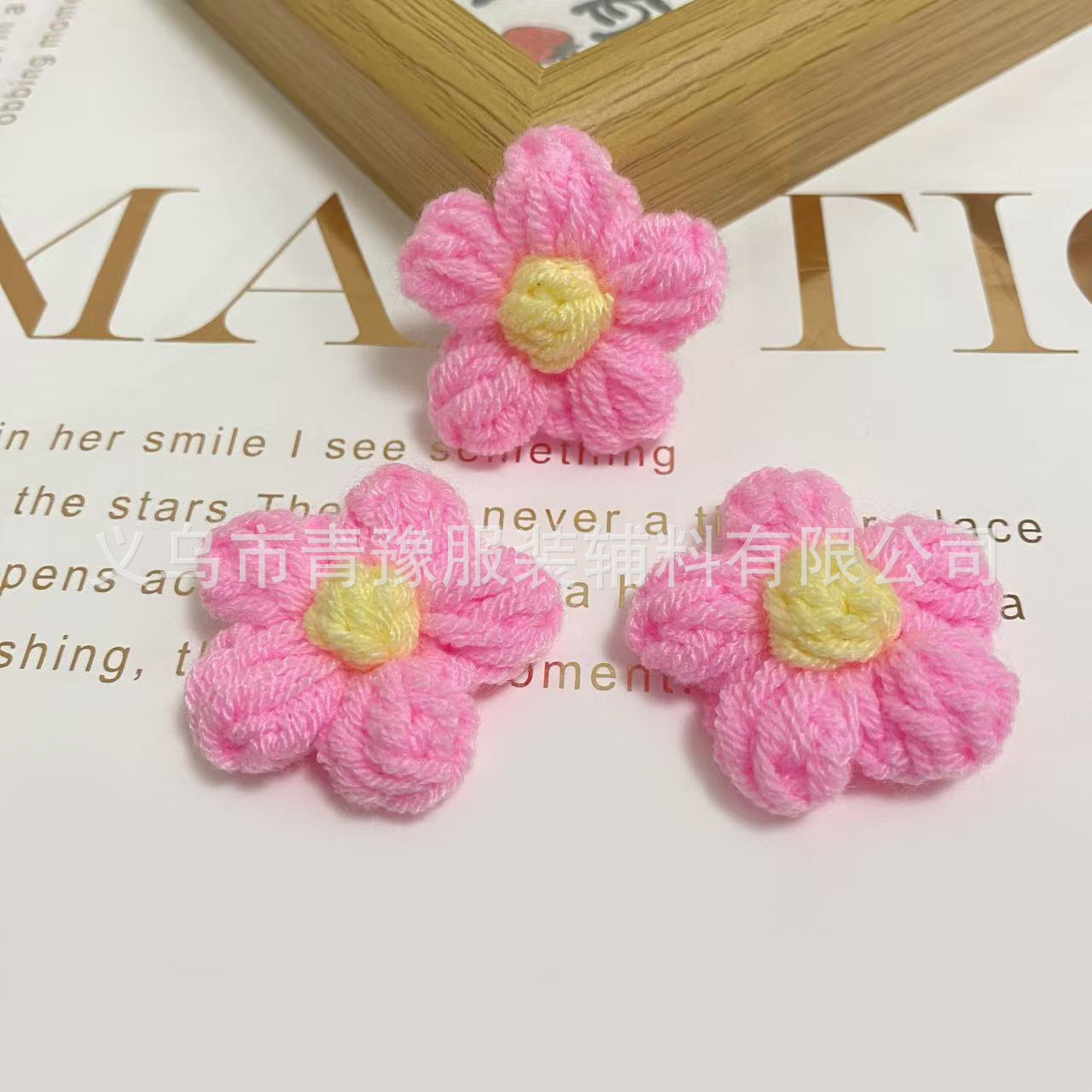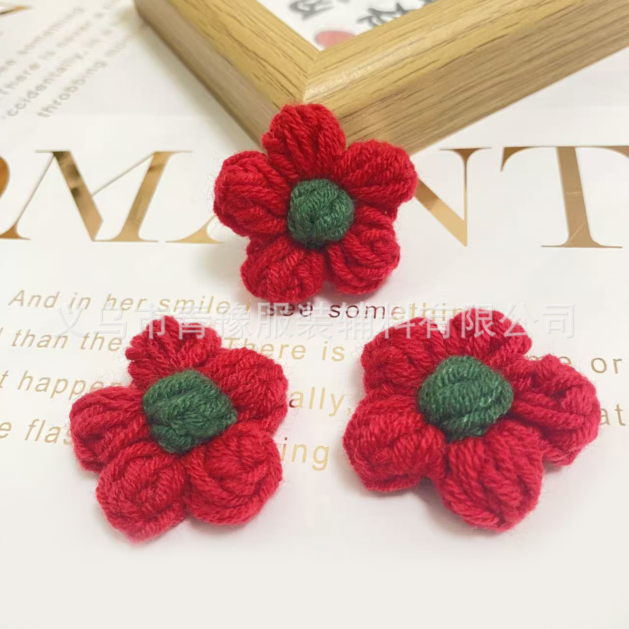 包邮手工钩针泡芙花 毛线编织花朵发饰发夹配件 胸花鞋花包包配饰
