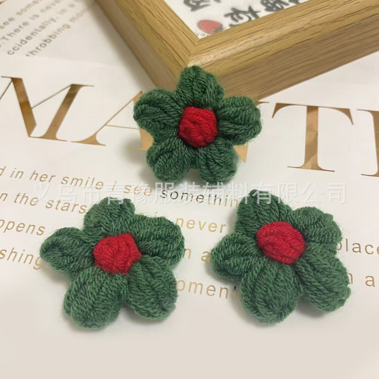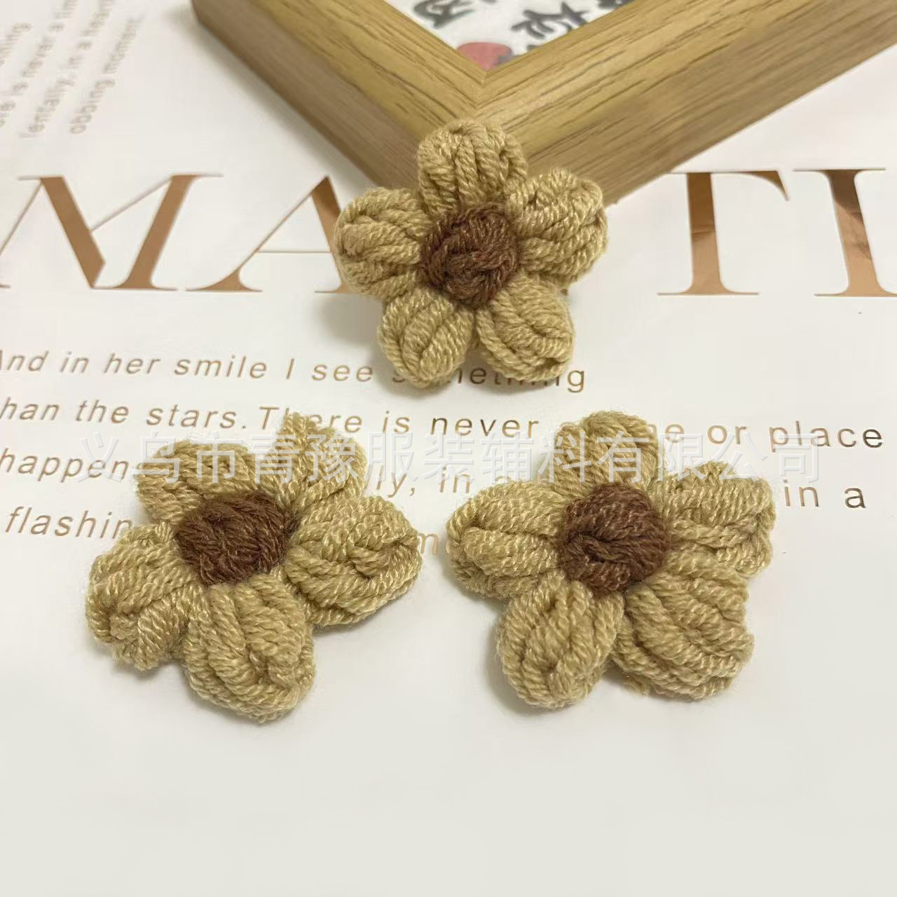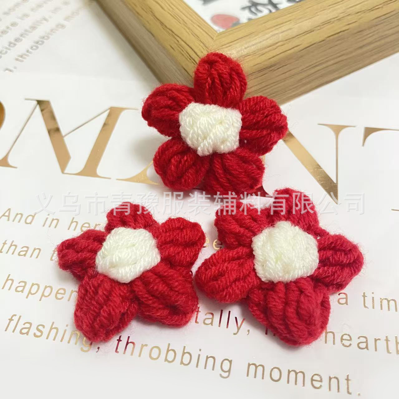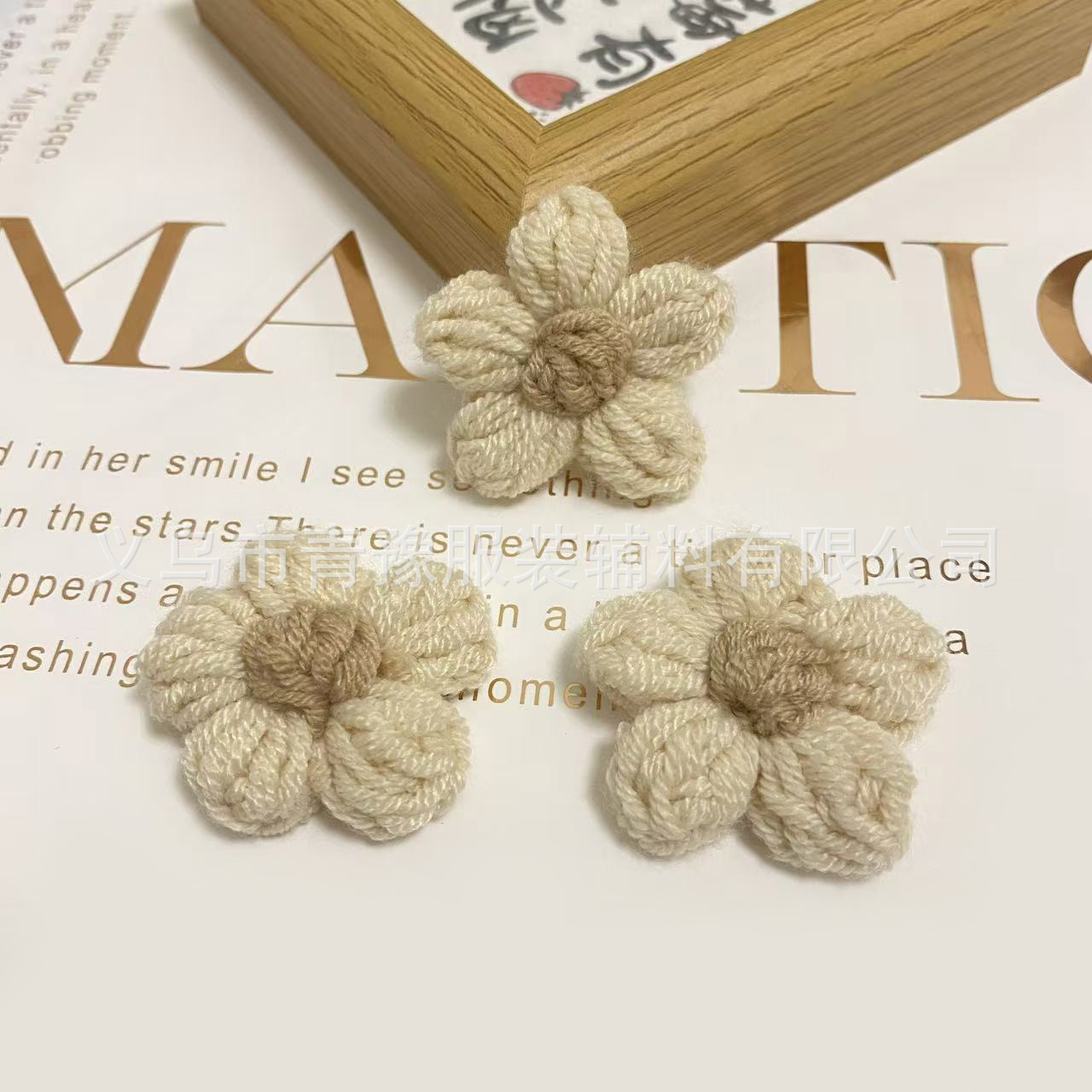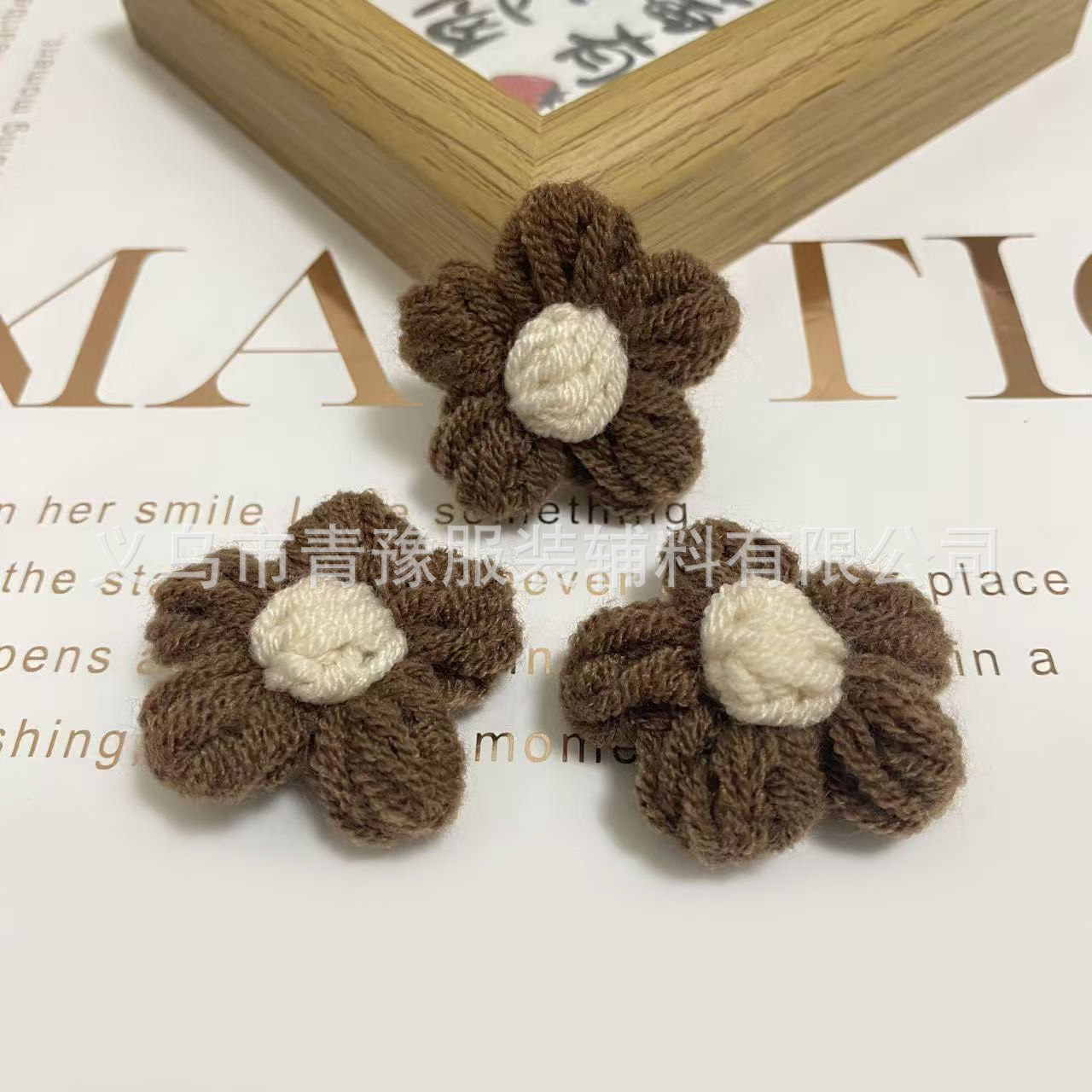包邮手工钩针泡芙花 毛线编织花朵发饰发夹配件 胸花鞋花包包配饰