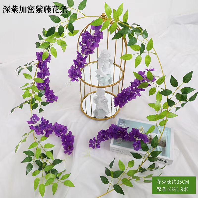 亚马逊 仿真紫藤花 假花藤条装饰花吊花塑料花藤蔓串花植物遮挡