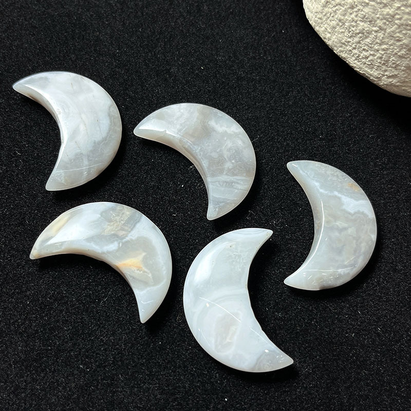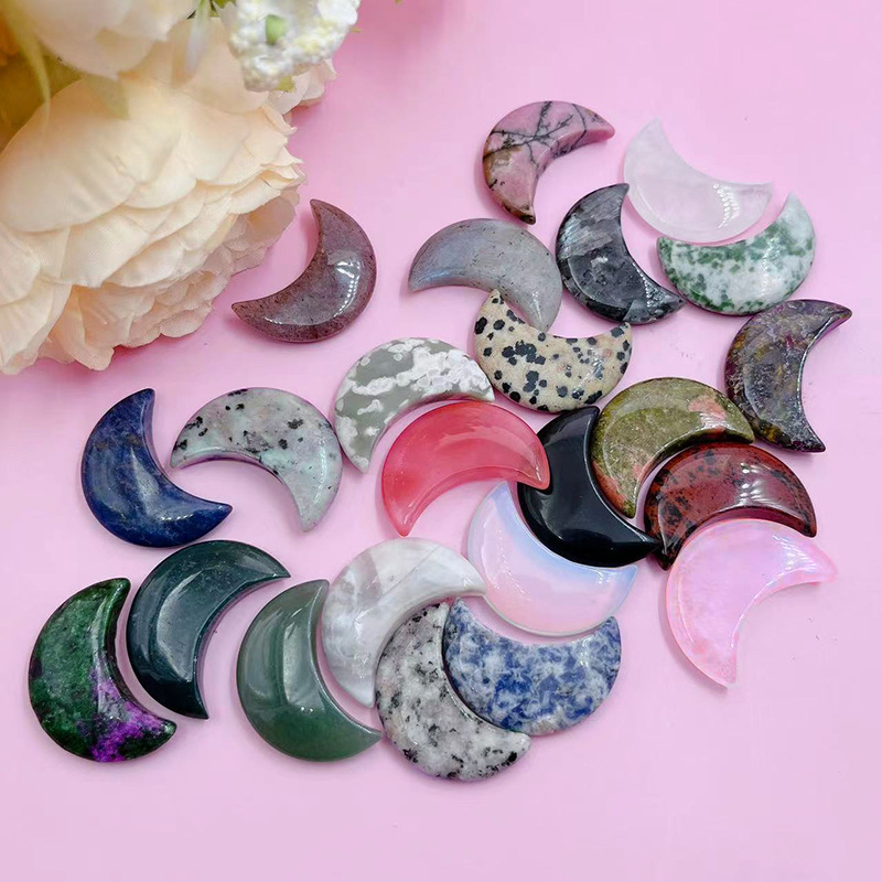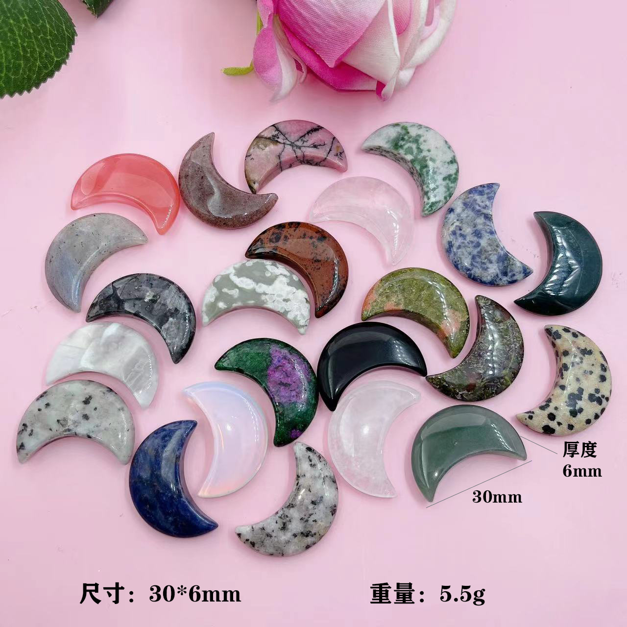天然石水晶玛瑙3cm月亮摆件 月牙石淘矿石diy饰品配件配饰半成品