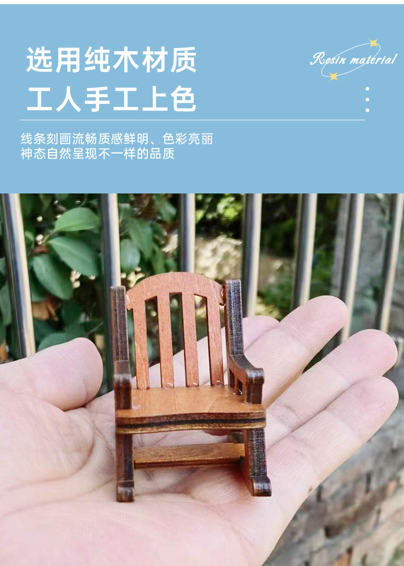 木质小凳子摆件办公室卧室装饰摆件微缩家具椅子场景迷你凳子模型