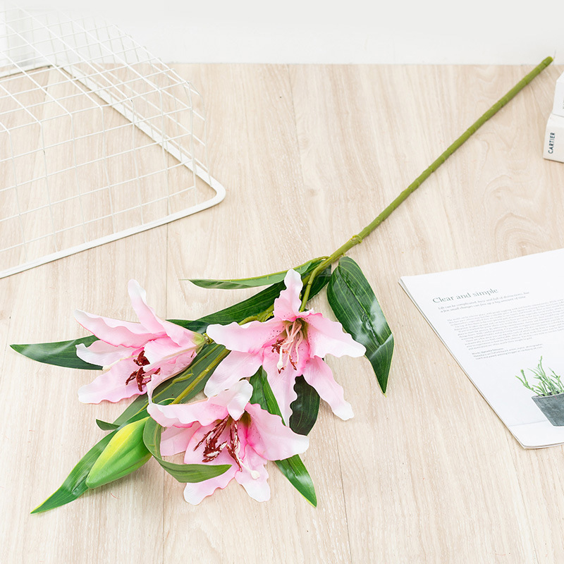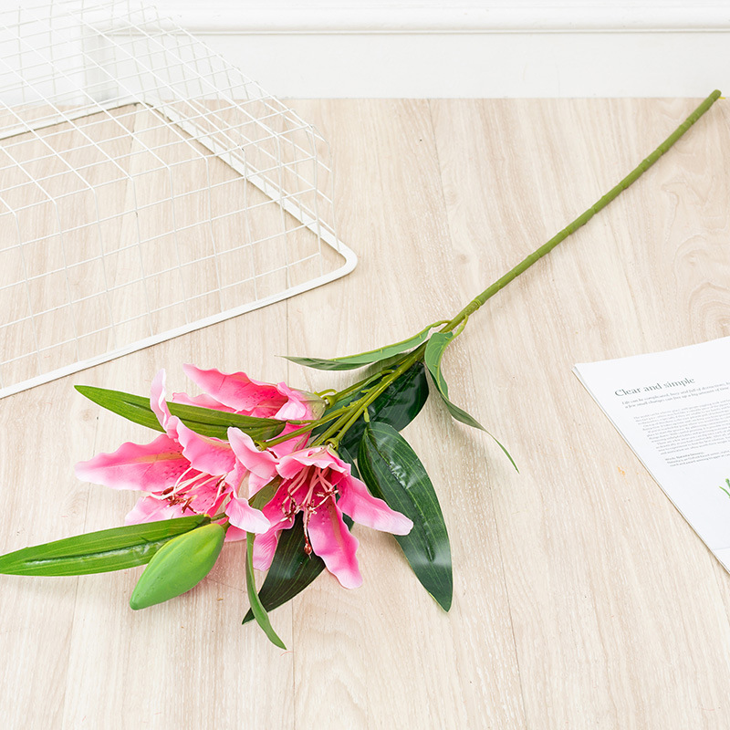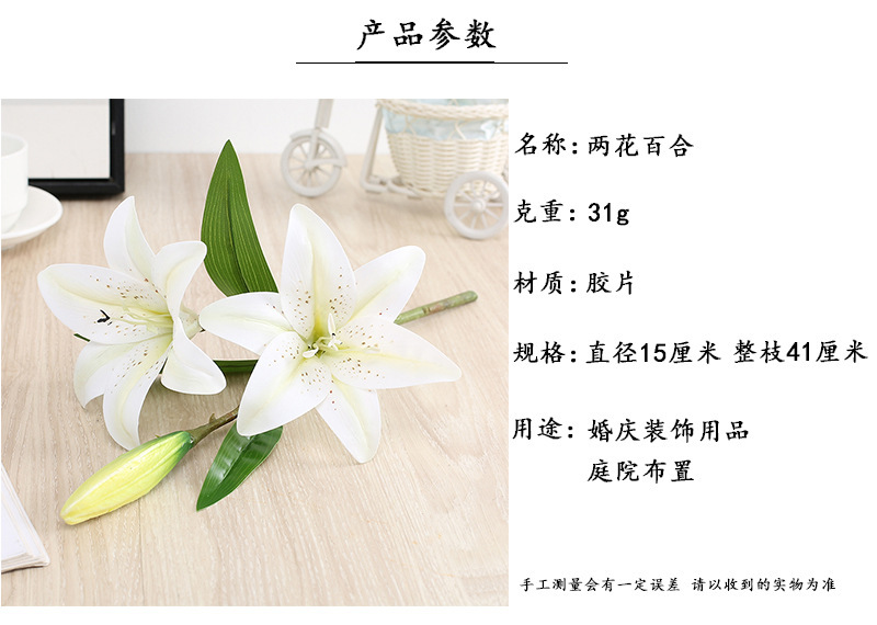 创渠仿真假花野百合两花一蕾甜心家居装饰绿植摆放婚礼手捧花