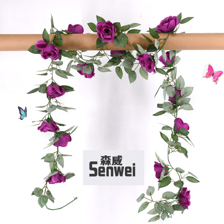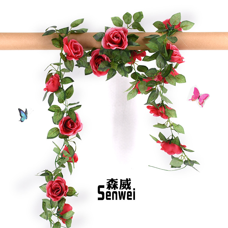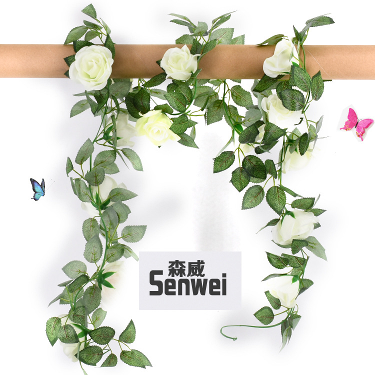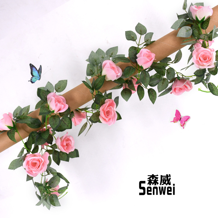 仿真玫瑰花藤 塑料假花藤蔓 绿叶植物花藤条婚庆家居装饰花藤批发