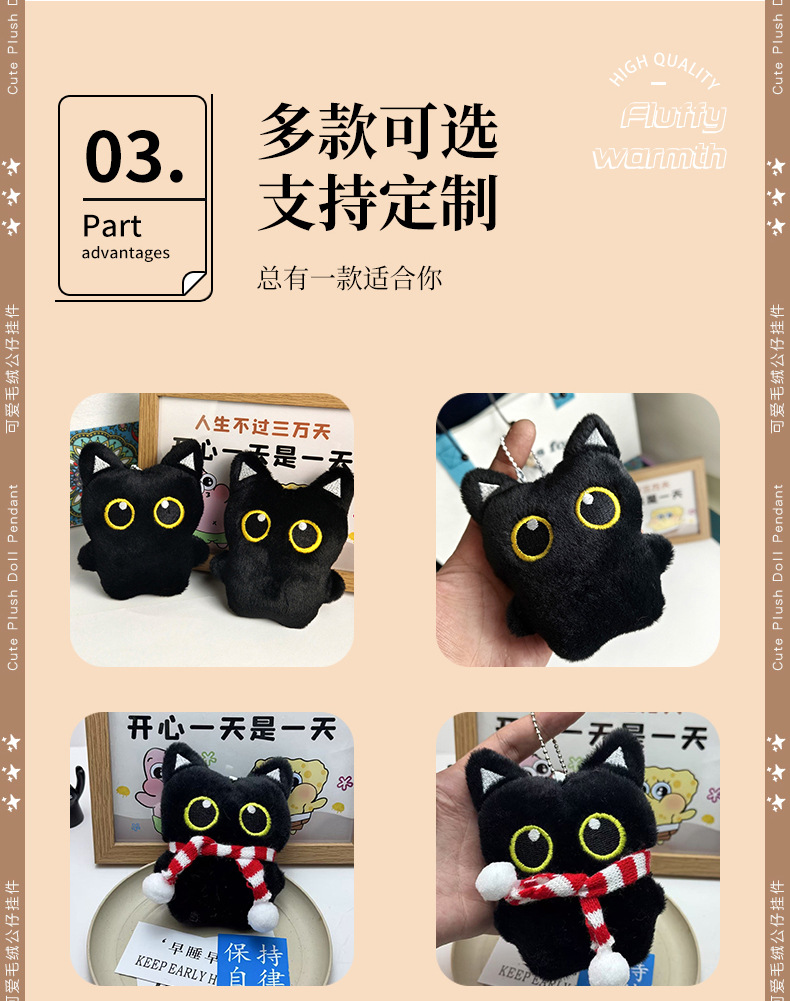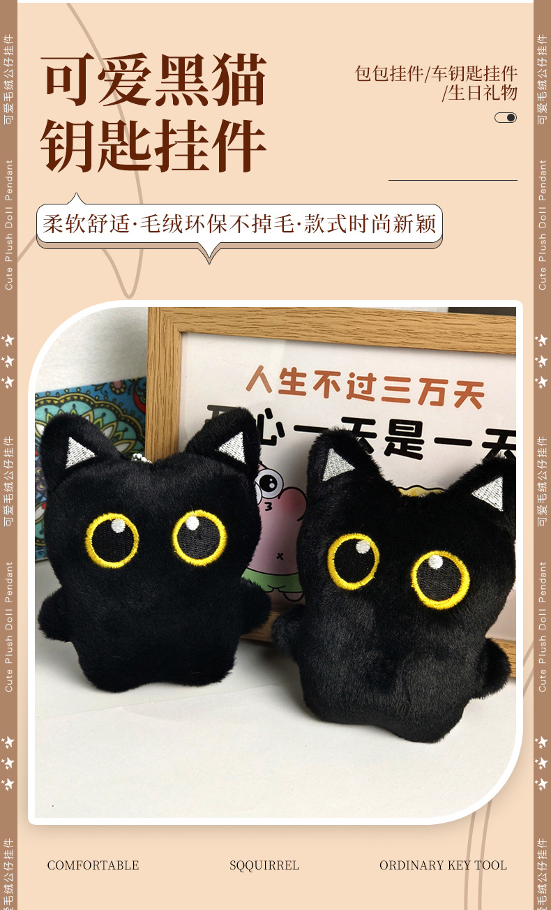 新款黑猫玩偶毛绒公仔挂件可爱猫咪包包挂饰情侣礼物ins学生礼物