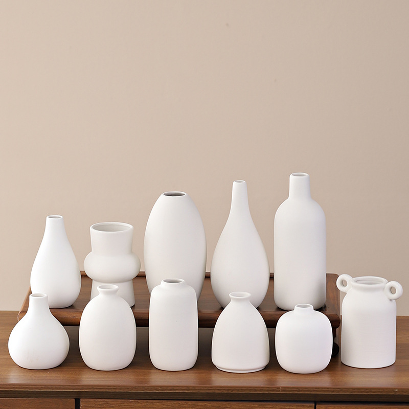 亚马逊跨境电商专供白色素烧陶瓷花瓶摆件客厅插干花餐桌面装饰品