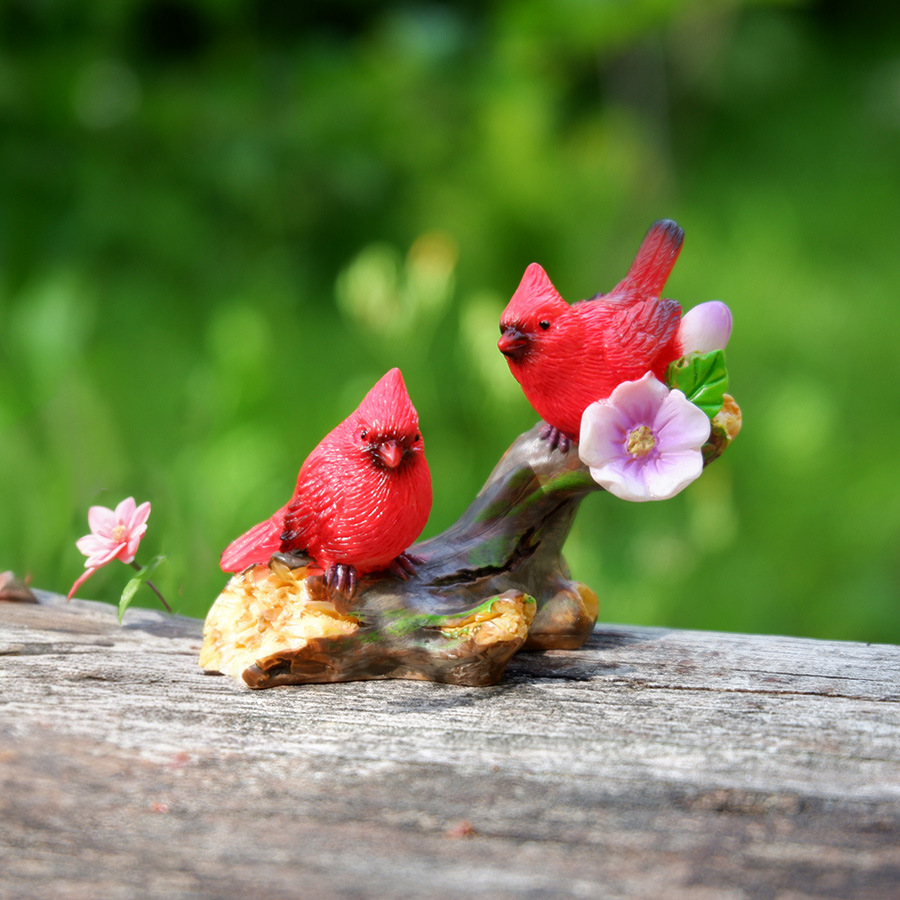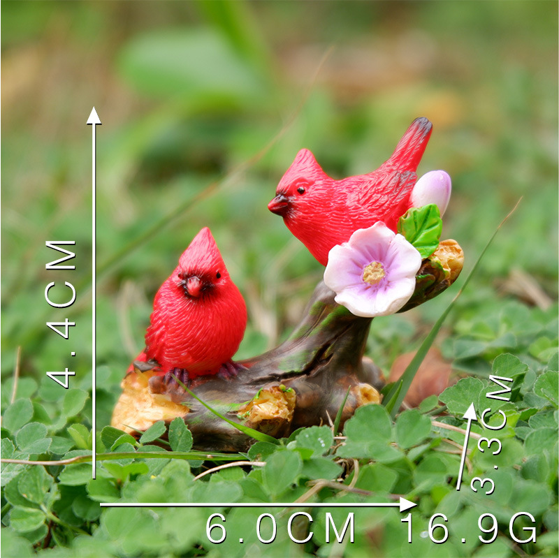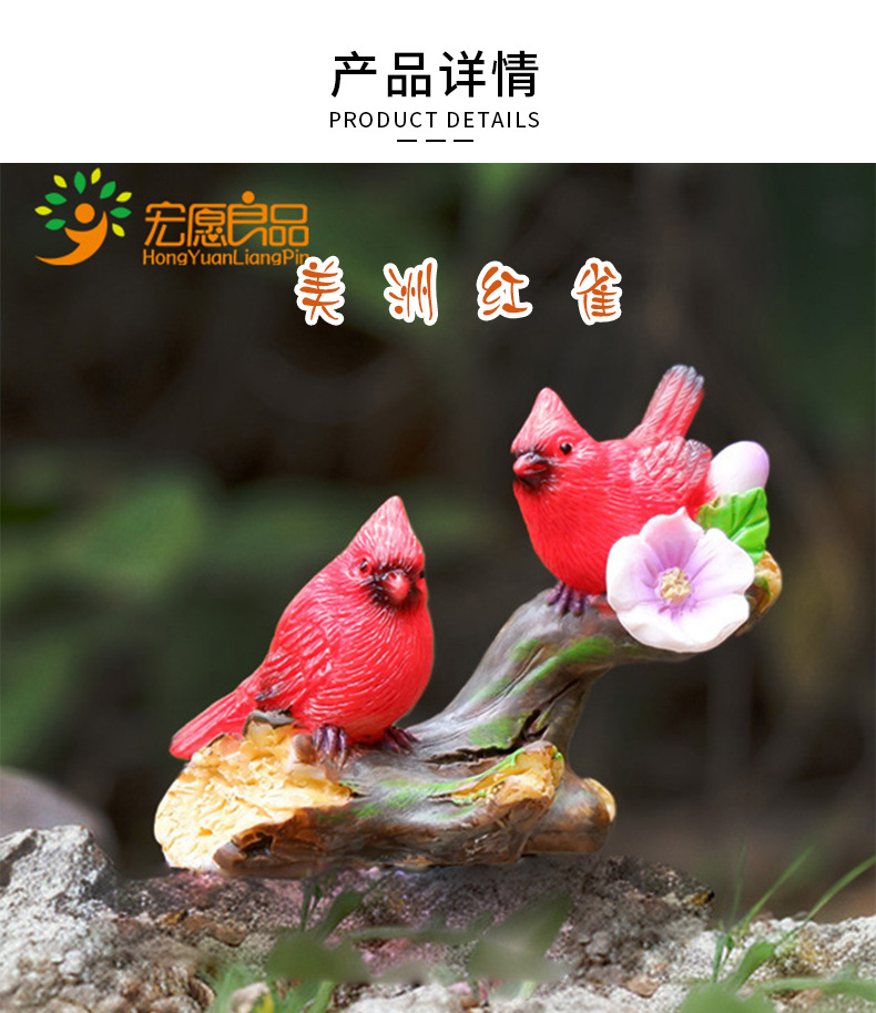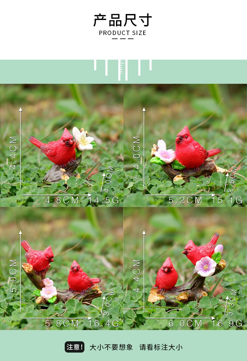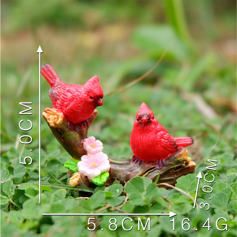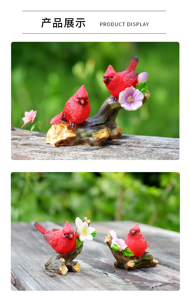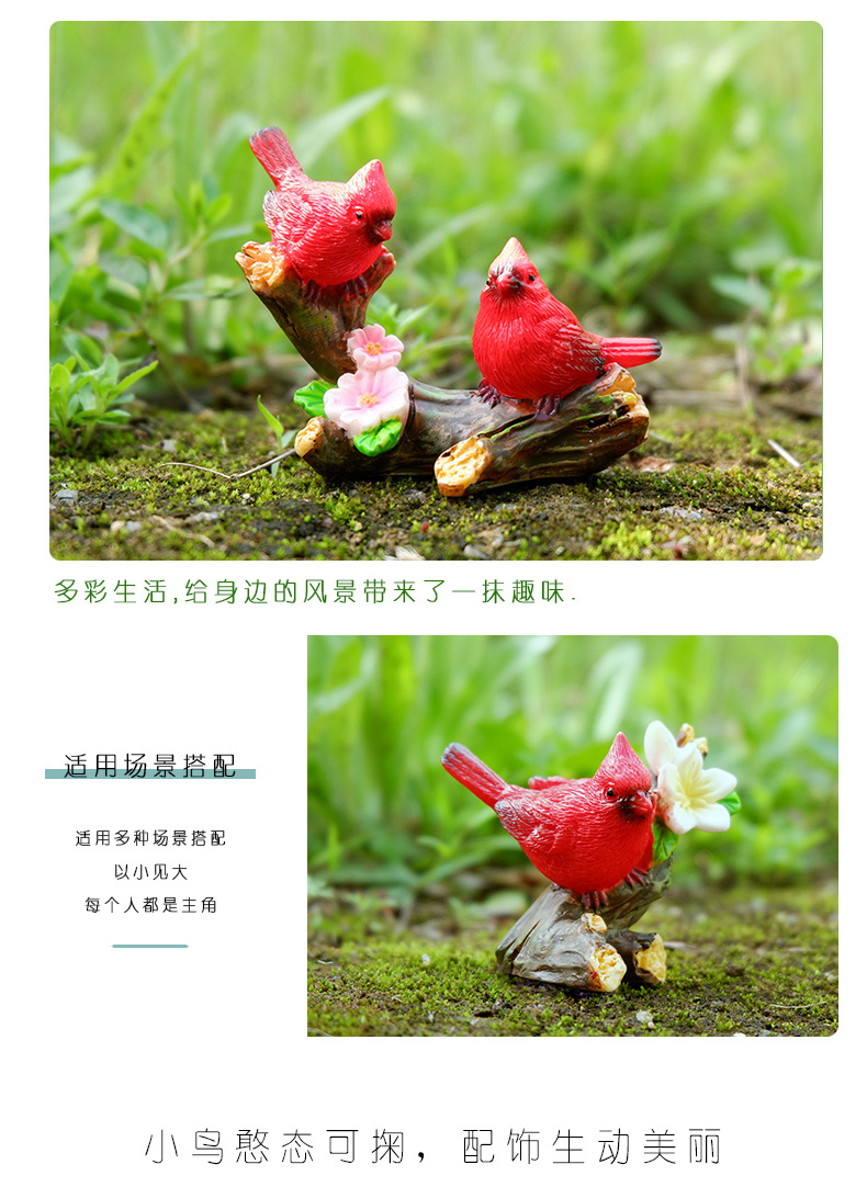 美洲红雀小鸟摆件微景观树脂工艺品可爱手工摆件园艺造景桌面装饰