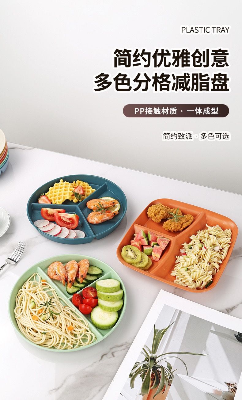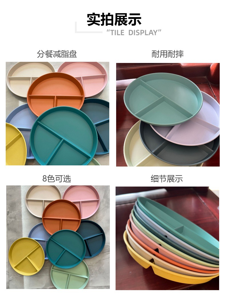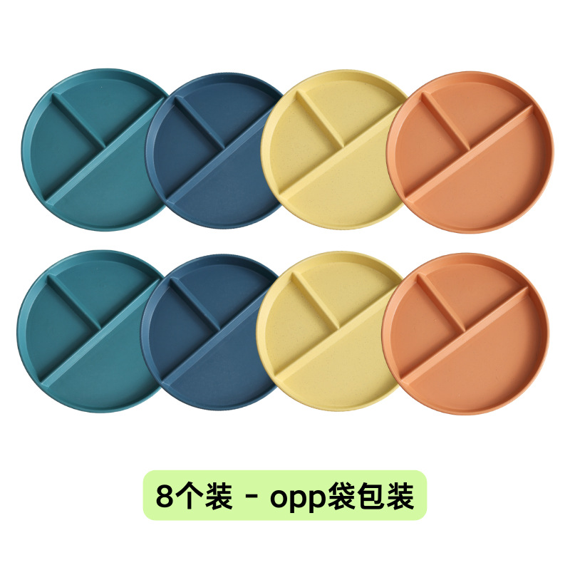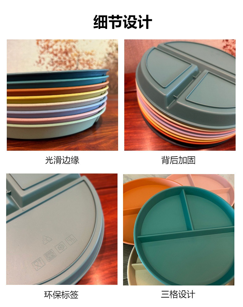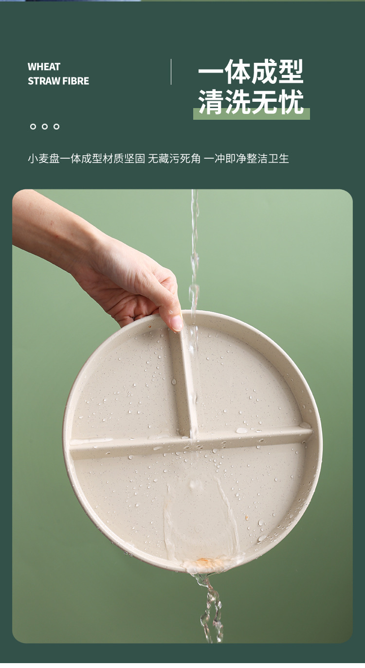 分餐盘小麦秸秆分格盘三格高颜值水果盘餐盘定量塑料盘子商用批发