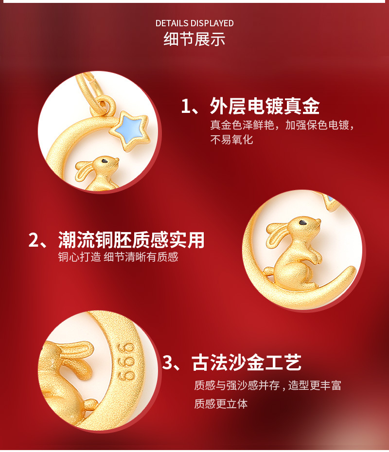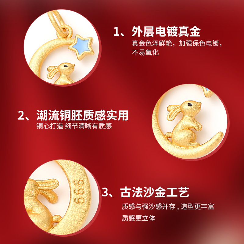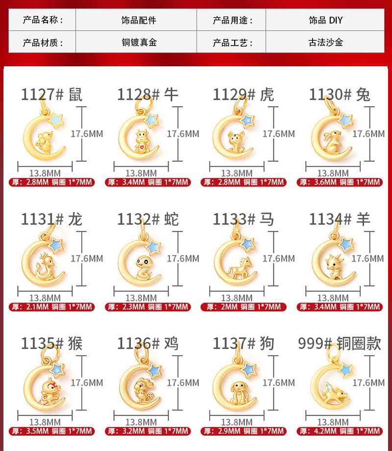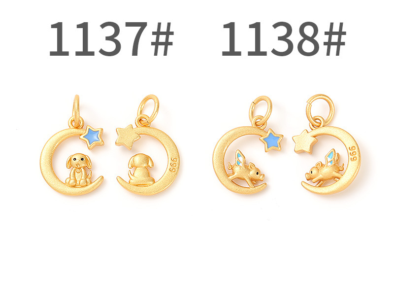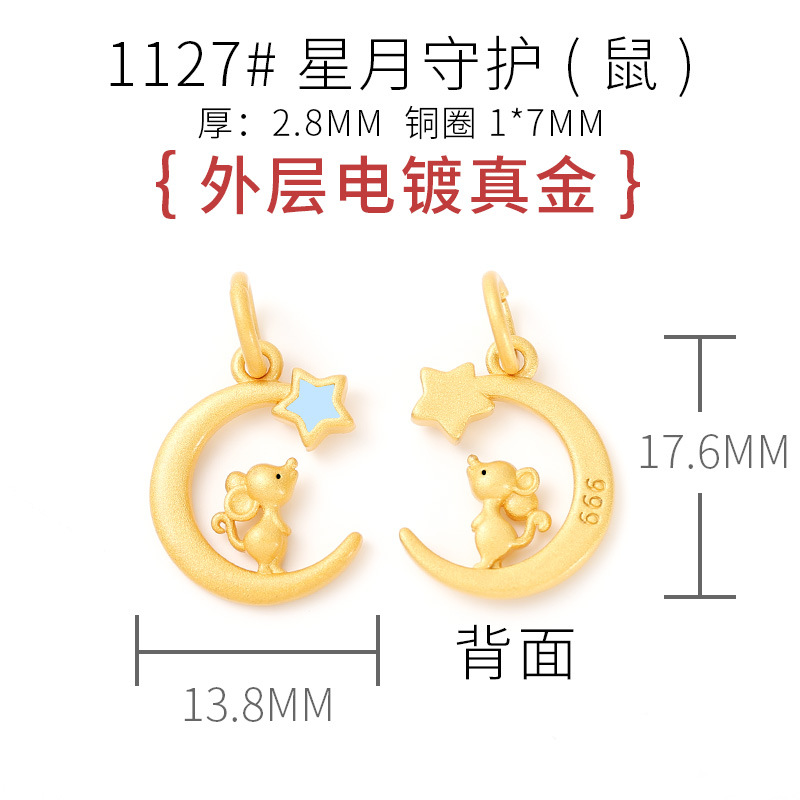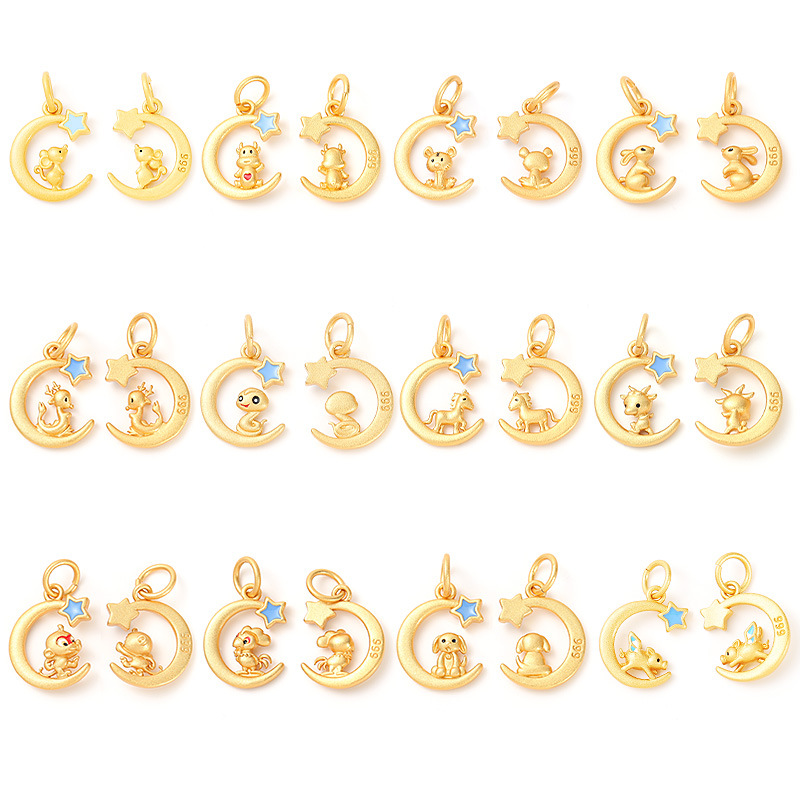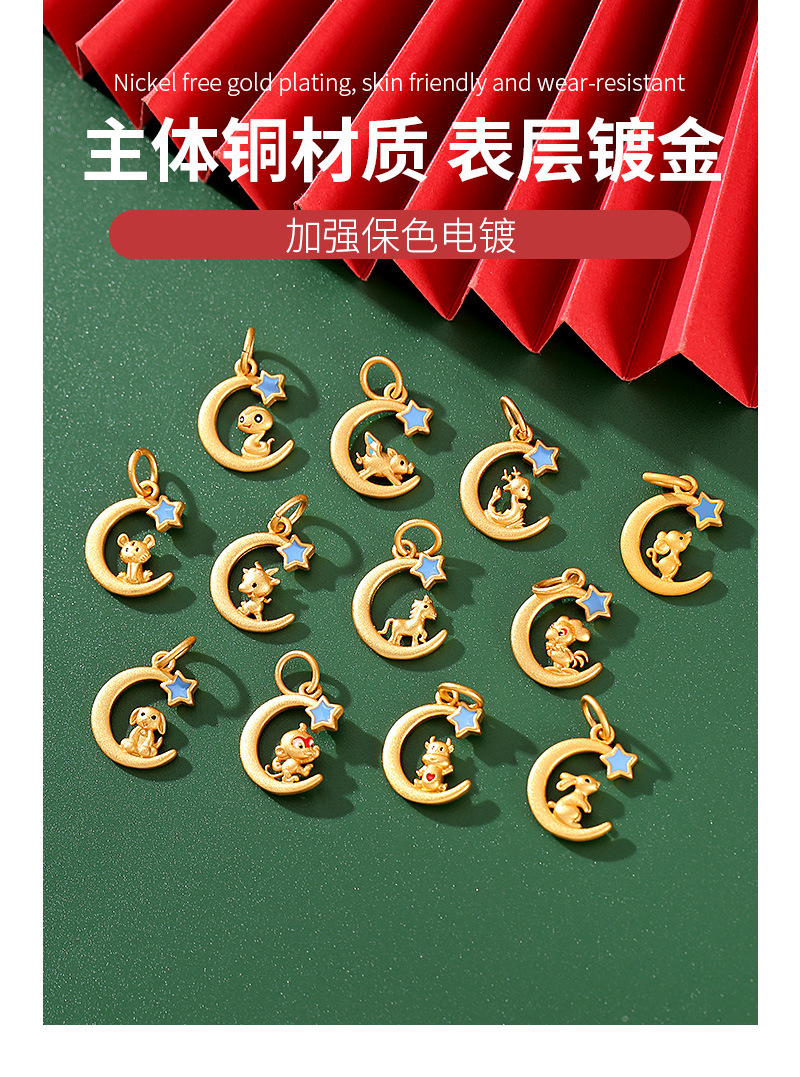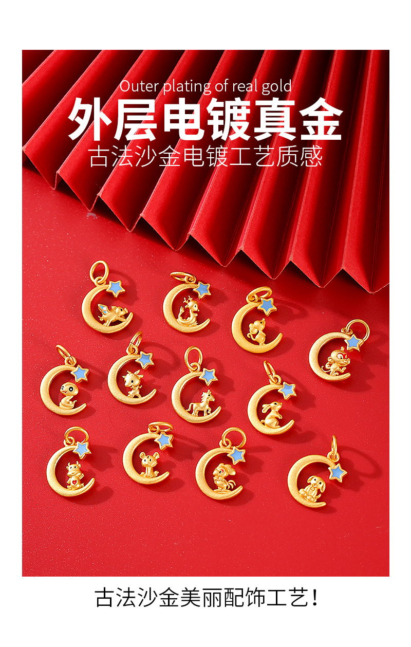 古法沙金新年配饰星月十二生肖项链吊坠本命年手串diy饰品配件