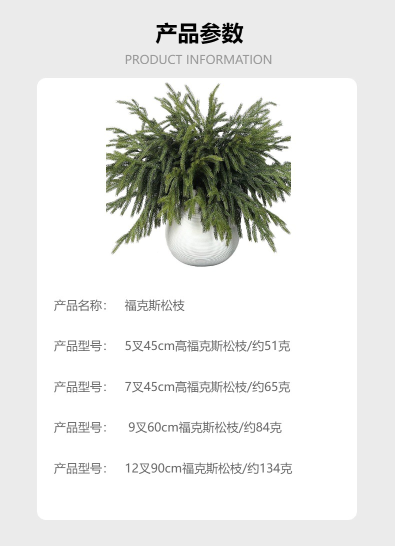 | 12 fork 90cm norfolk pine needle(12叉90cm诺福克松针) | USD $0.81 | 98405 piece available |