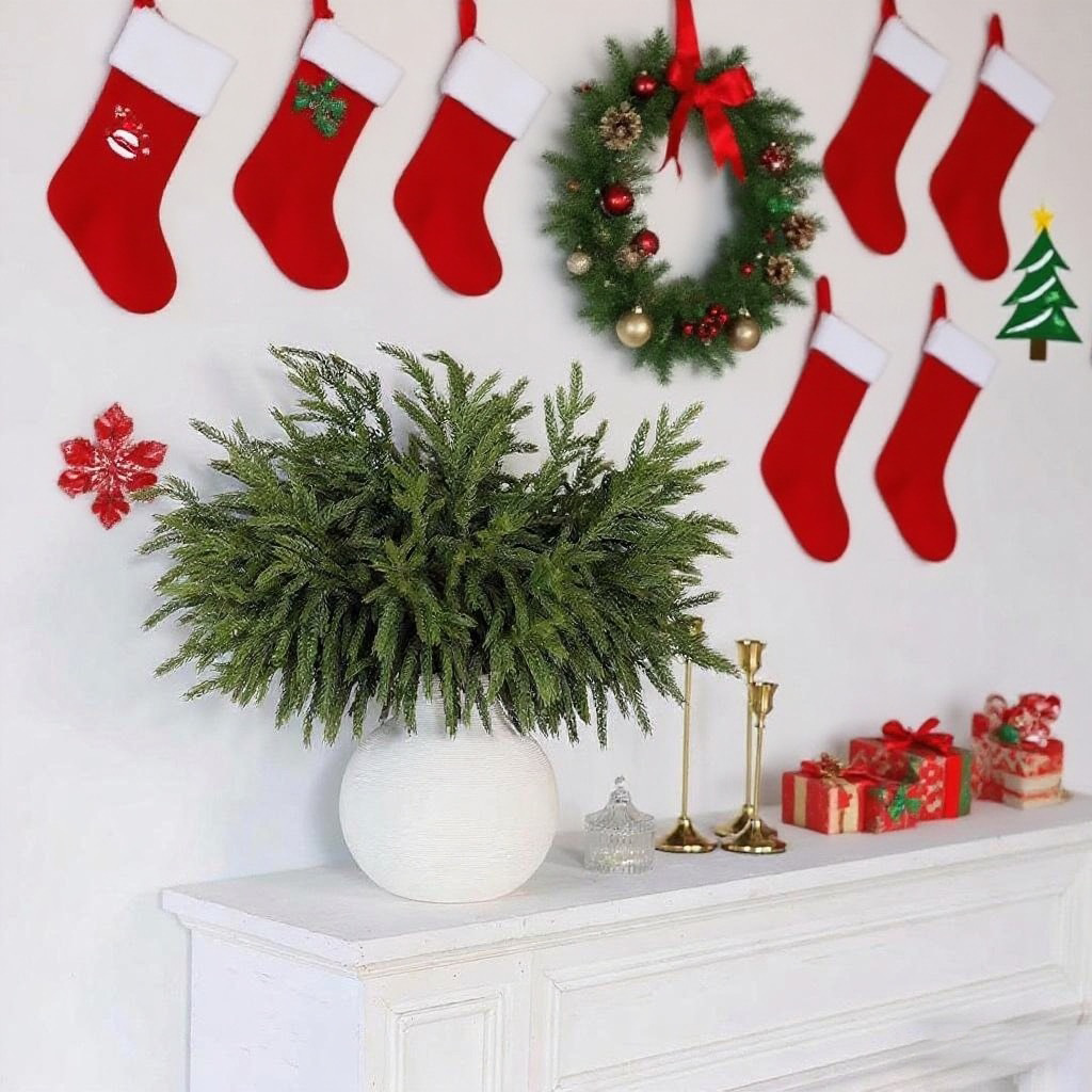 跨境亚马逊诺福克手感软胶松针单支 仿真绿植圣诞节装饰摆件家居