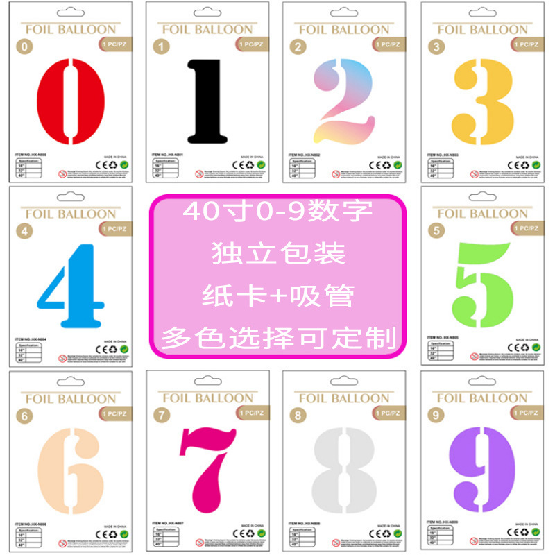 精装纸卡独立包装40寸大号美版数字生日派对装饰用品铝膜气球批发