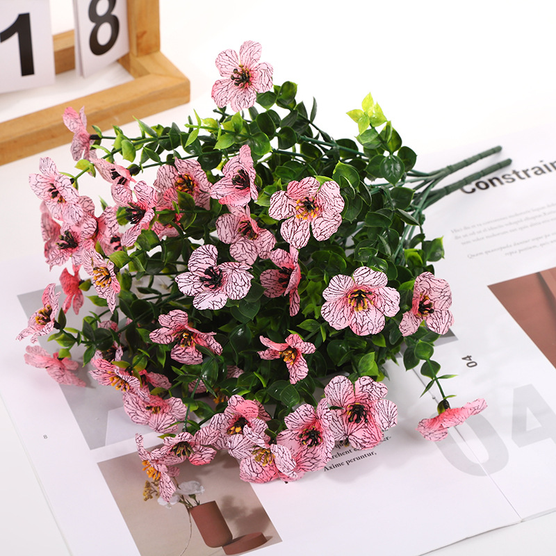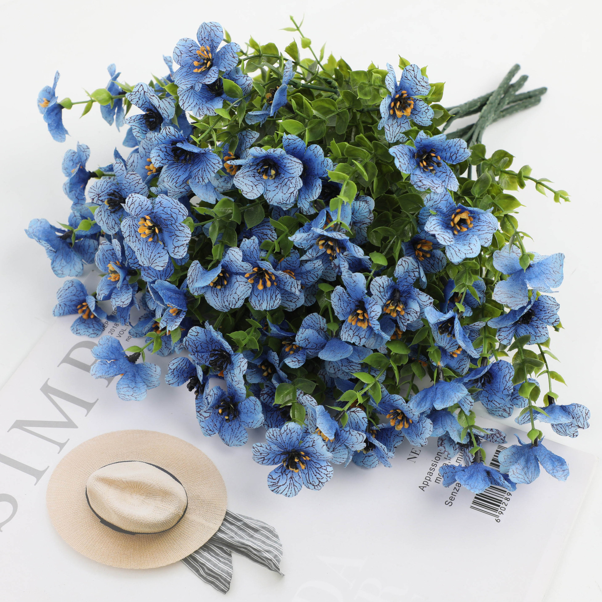 仿真绿植七叉桉树尤加利紫罗兰塑料假花家居装饰摆件仿真花批发