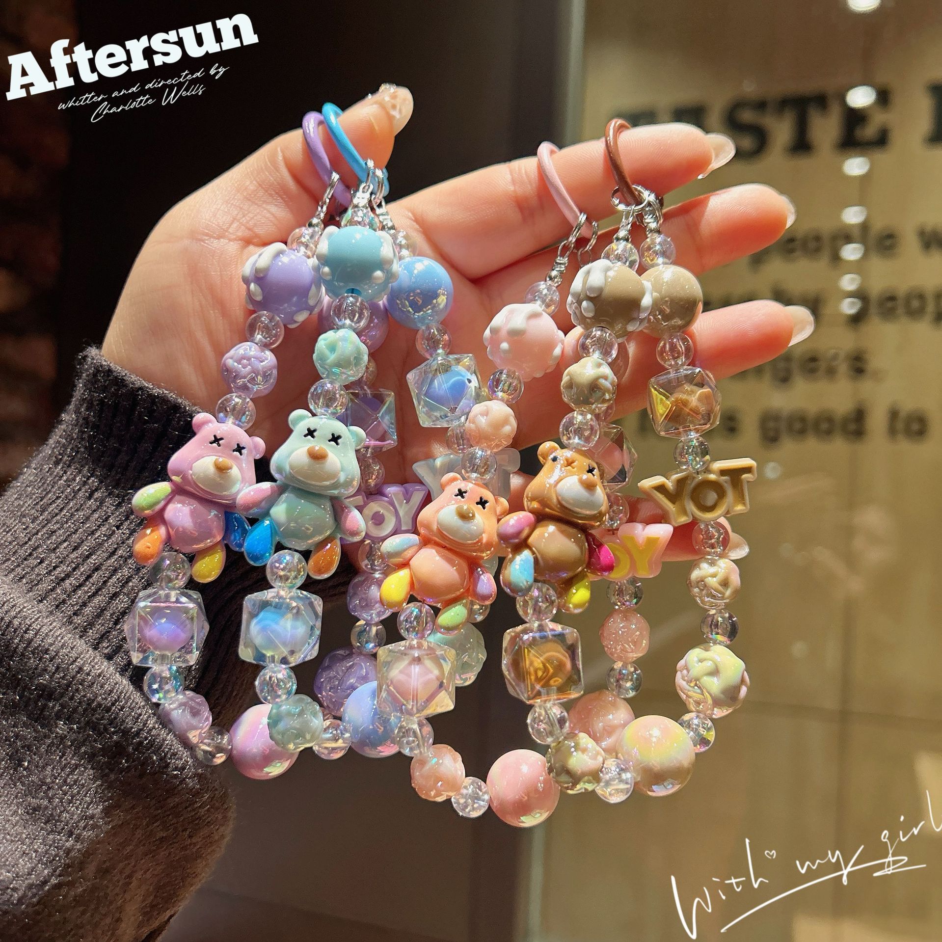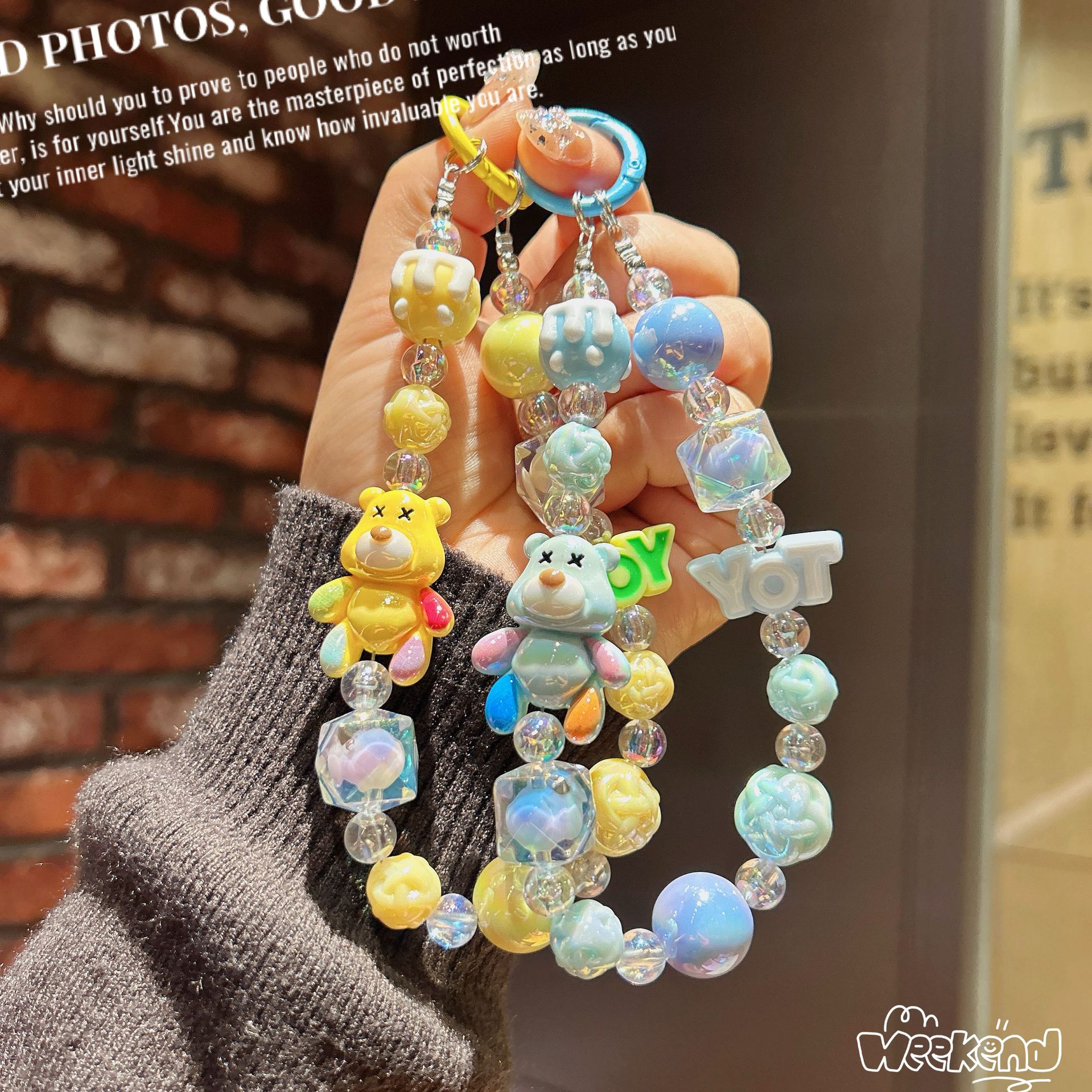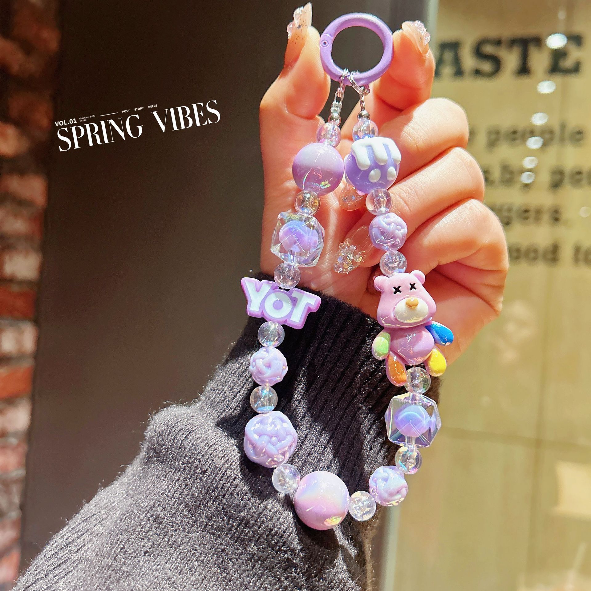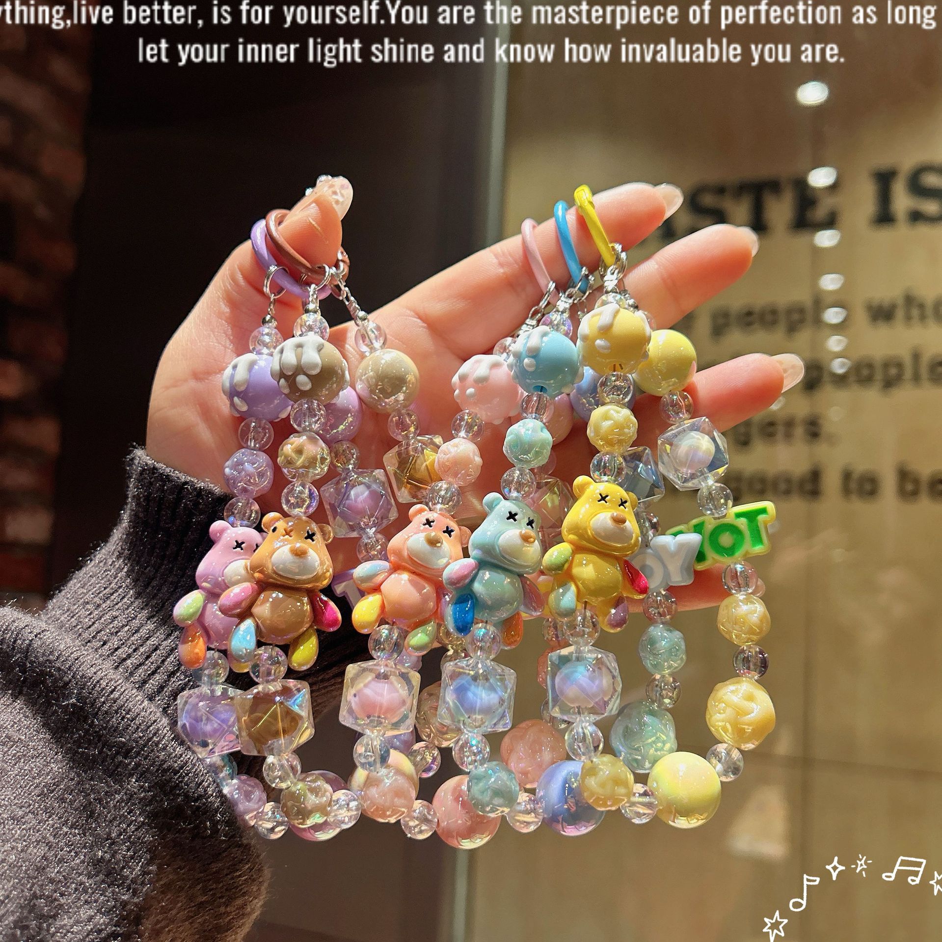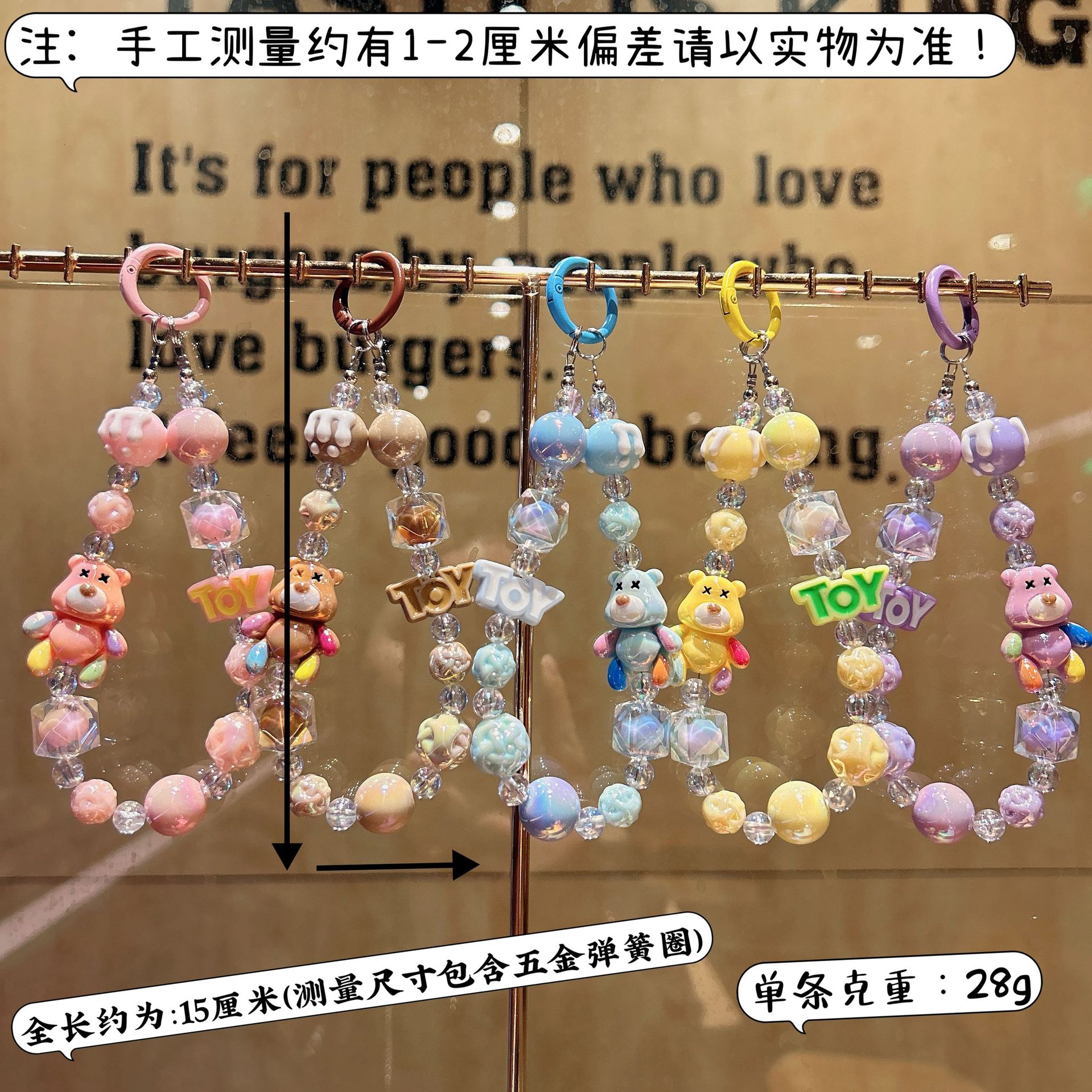 新款卡通手机链暴力小熊手绘珠串手机挂件包包汽车钥匙扣配饰批发