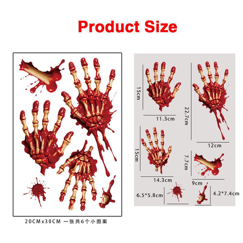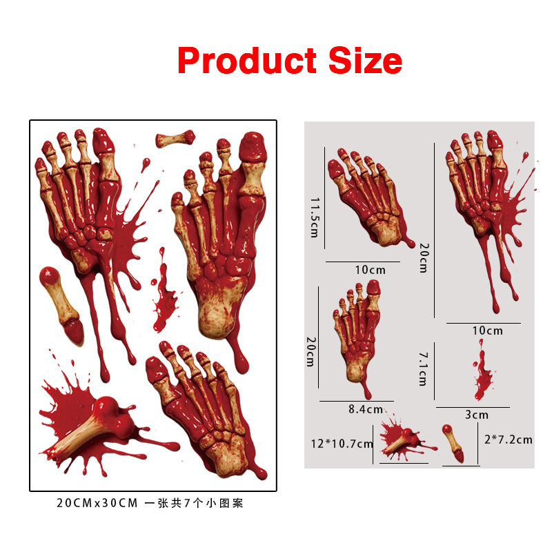 2025年跨境新款万圣节血手印贴纸骨爪恐怖装饰贴画墙贴血脚印贴画