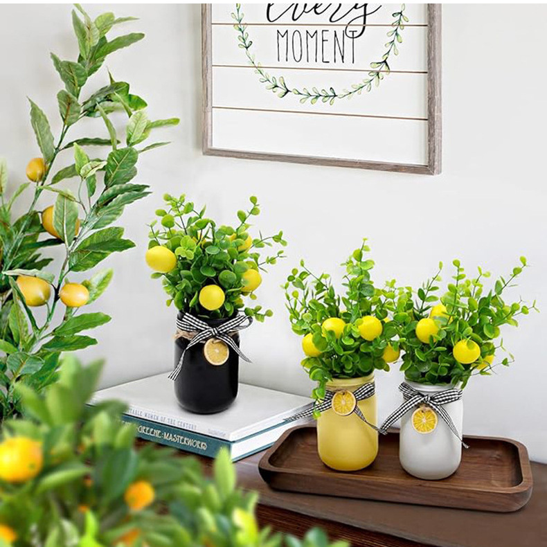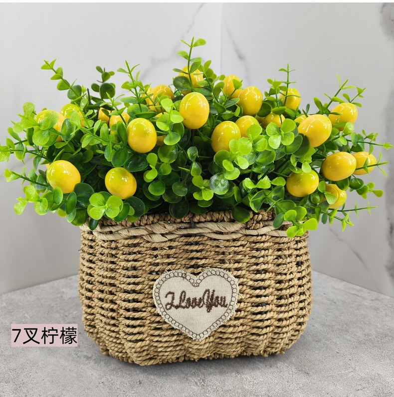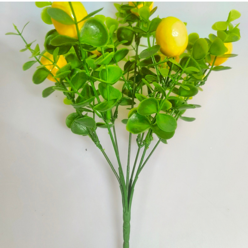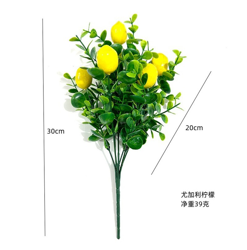 亚马逊仿真七叉尤加利柠檬把束 仿真花家居装饰绿植摆件拍照道具