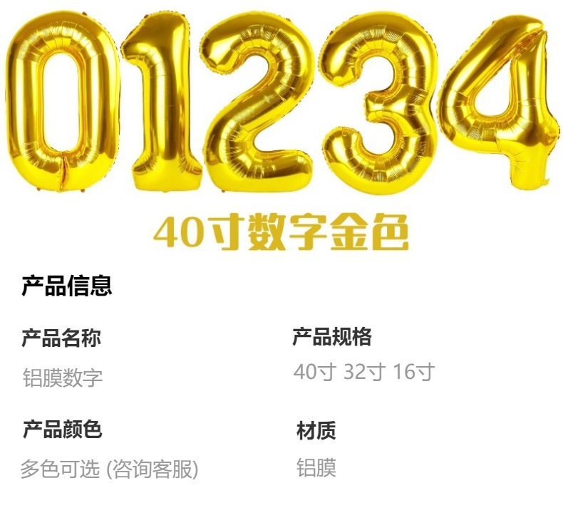 数字气球铝膜气球40寸美版周年生日气球生日布置装饰品气球批发