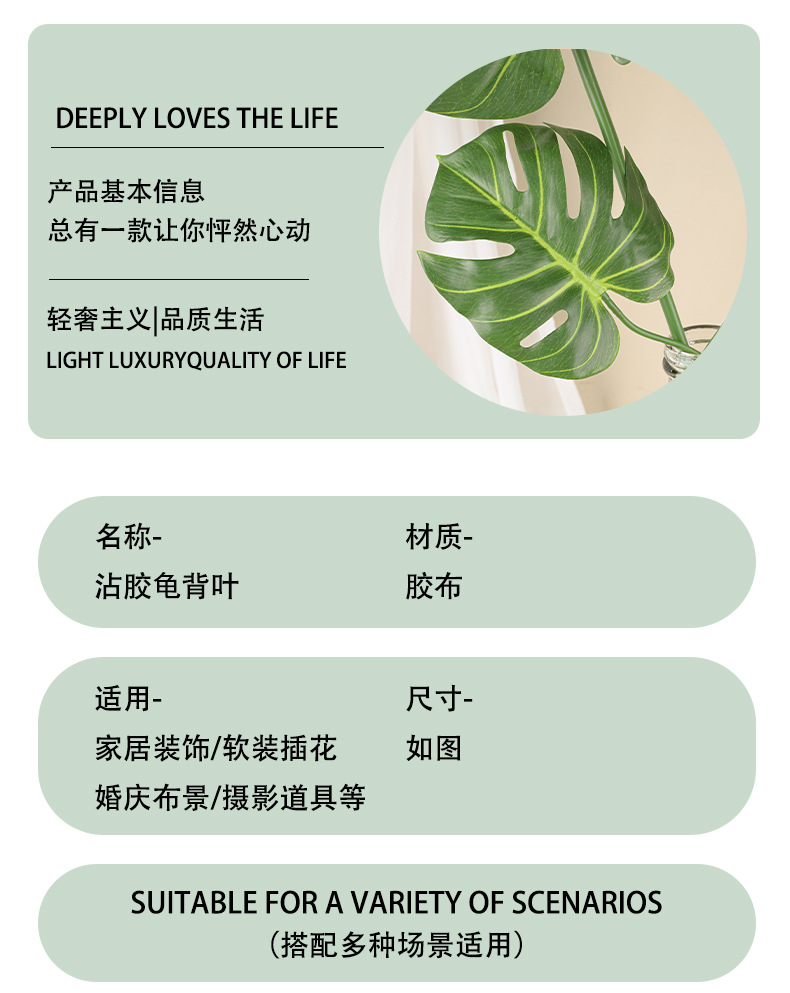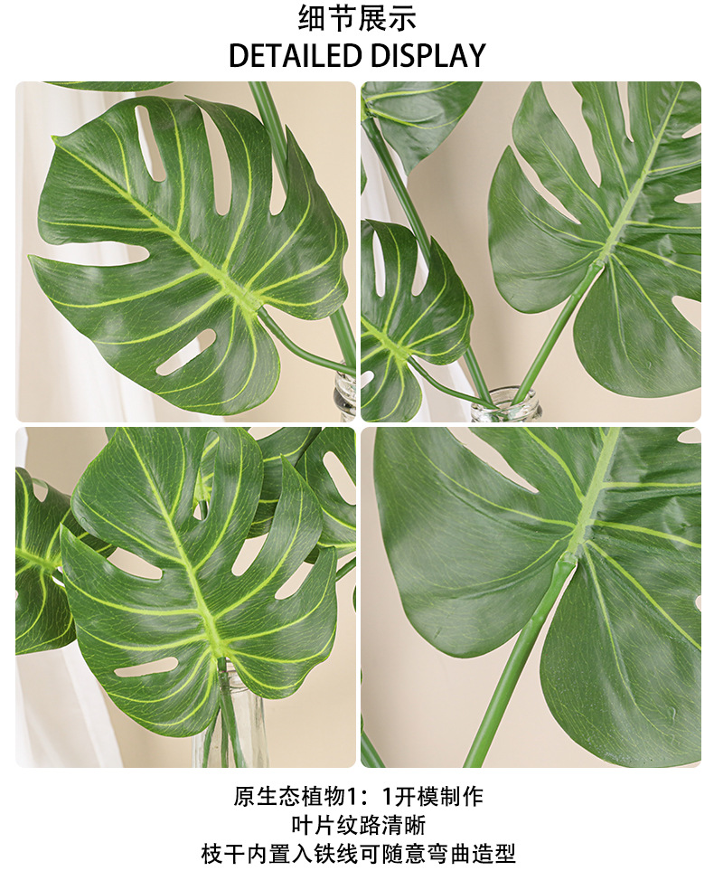 批发仿真植物手感龟背叶 插花配件 单片叶子 植物墙配材 家居装饰
