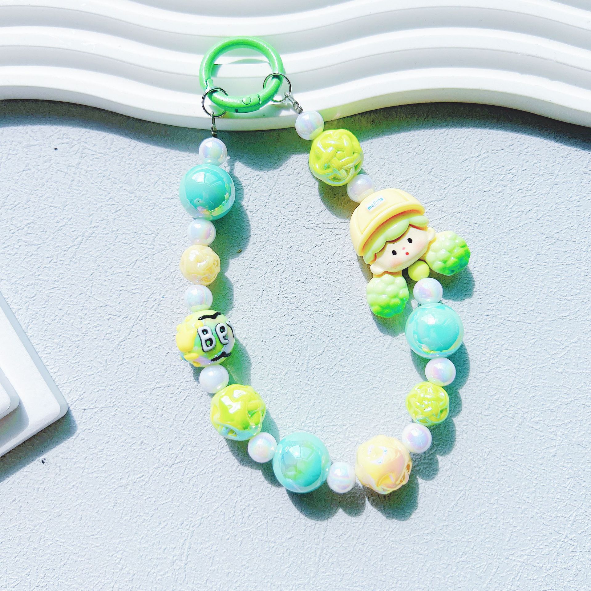 卡通爆米花女孩手机链挂件抖音DIY同款手绘珠串箱包配饰创意饰品