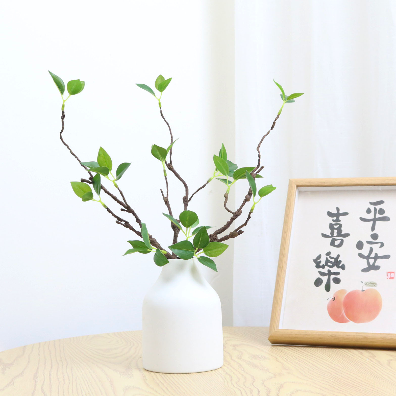 迷你仿真绿叶发泡枝家居客厅餐桌枯枝绿叶枯藤绿植装饰插花跨境