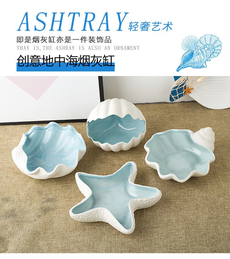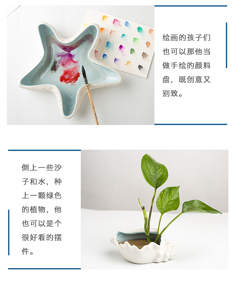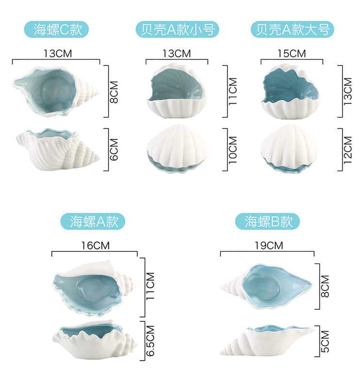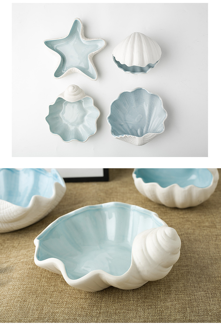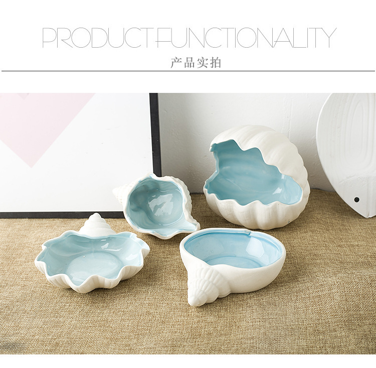 跨境海星海螺贝壳陶瓷摆件收纳盘海洋水培盆首饰盘收纳盘家居摆件