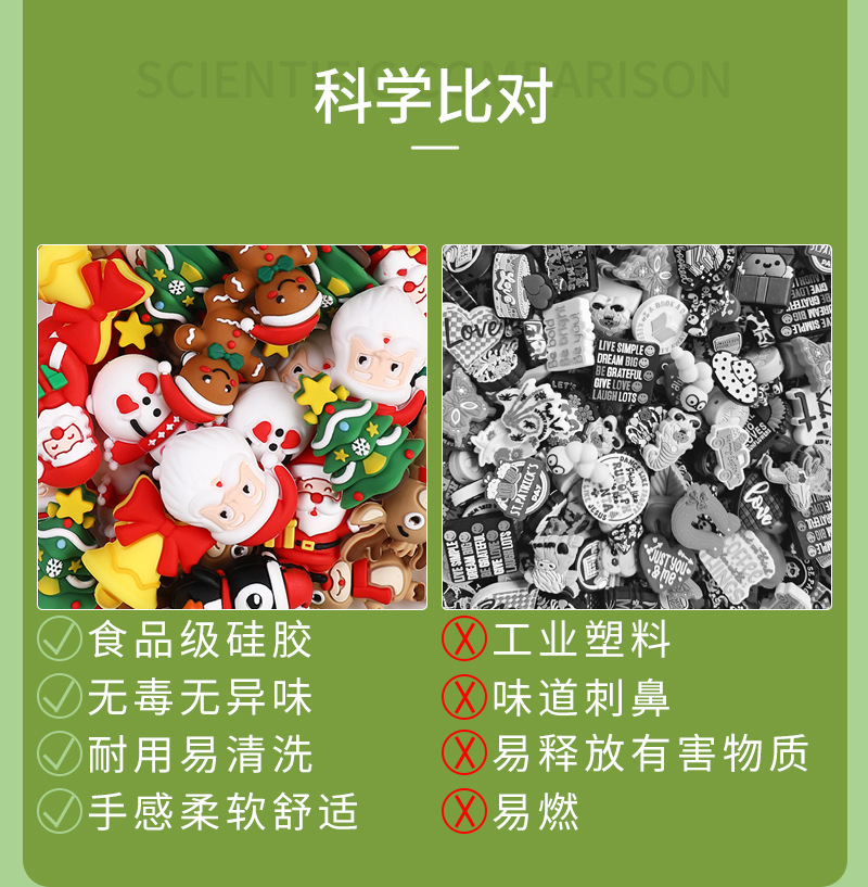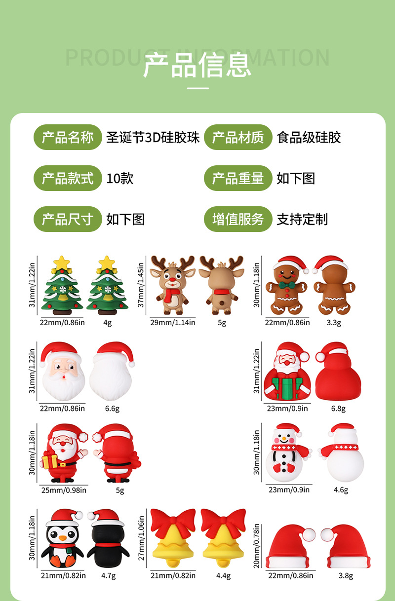 新款圣诞节3D硅胶珠配件diy装饰品圣诞老人卡通串珠硅胶珠子批发