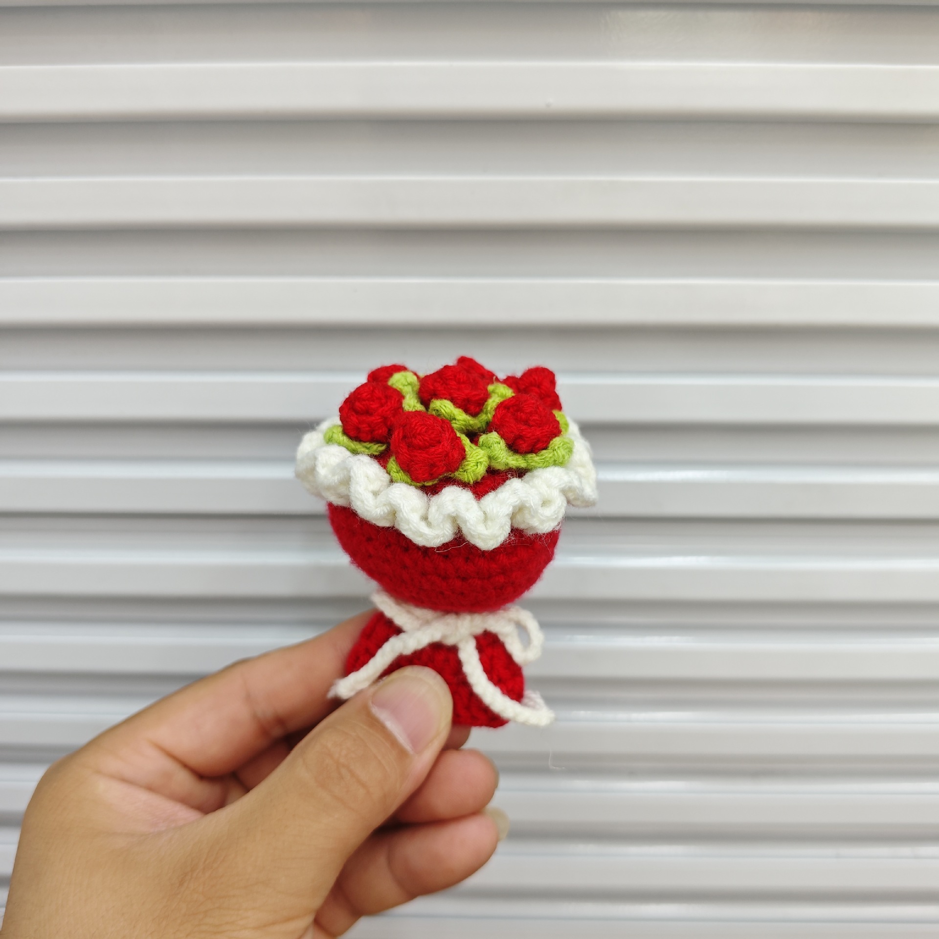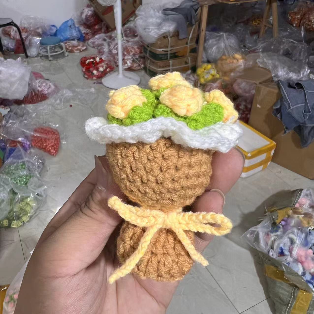 diy成品毛线手捧花教师节情人节礼品礼物玫瑰花向日葵汽车摆件