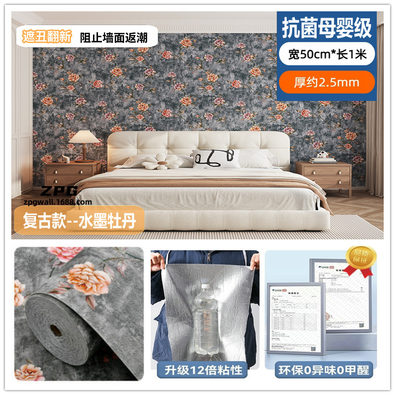 返潮墙专用墙纸防水防潮防发霉墙壁贴纸加厚掉灰墙墙贴自粘可擦洗