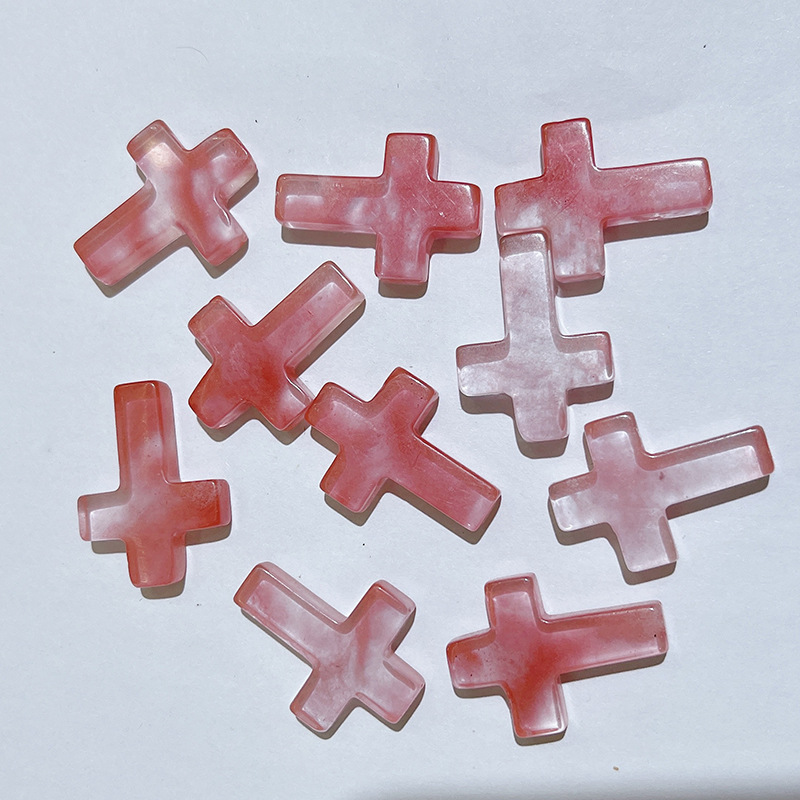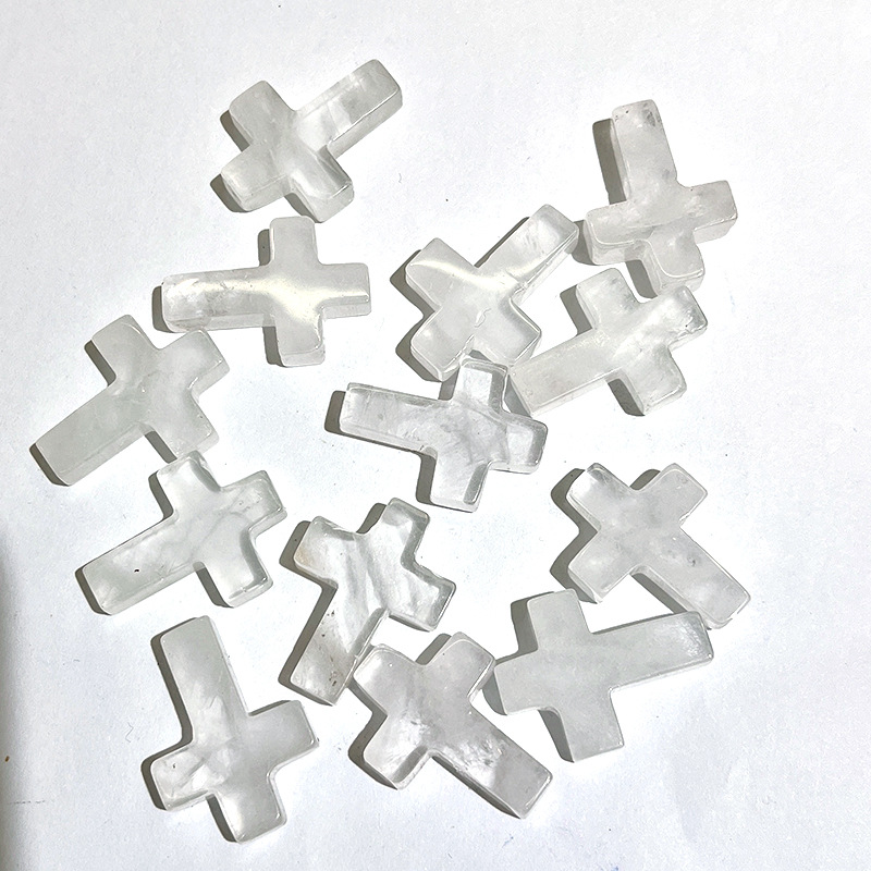 跨境天然水晶无孔十字架吊坠 十字架玉石项链饰品配件挂饰亚马逊
