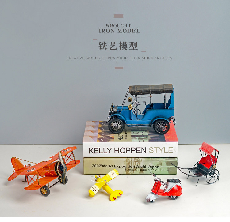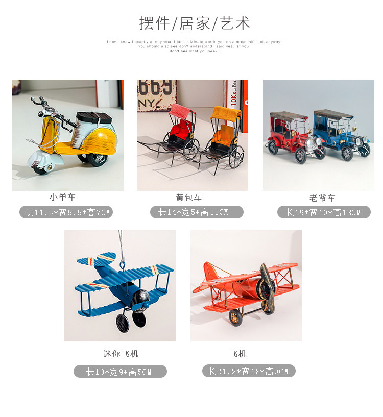 zakka复古飞机 黄包车 摩托车 模型小摆件铁皮装饰品摆设摄影道具