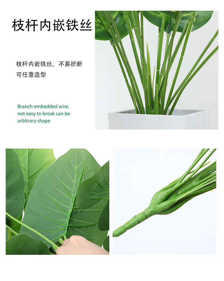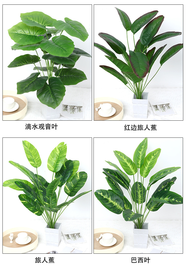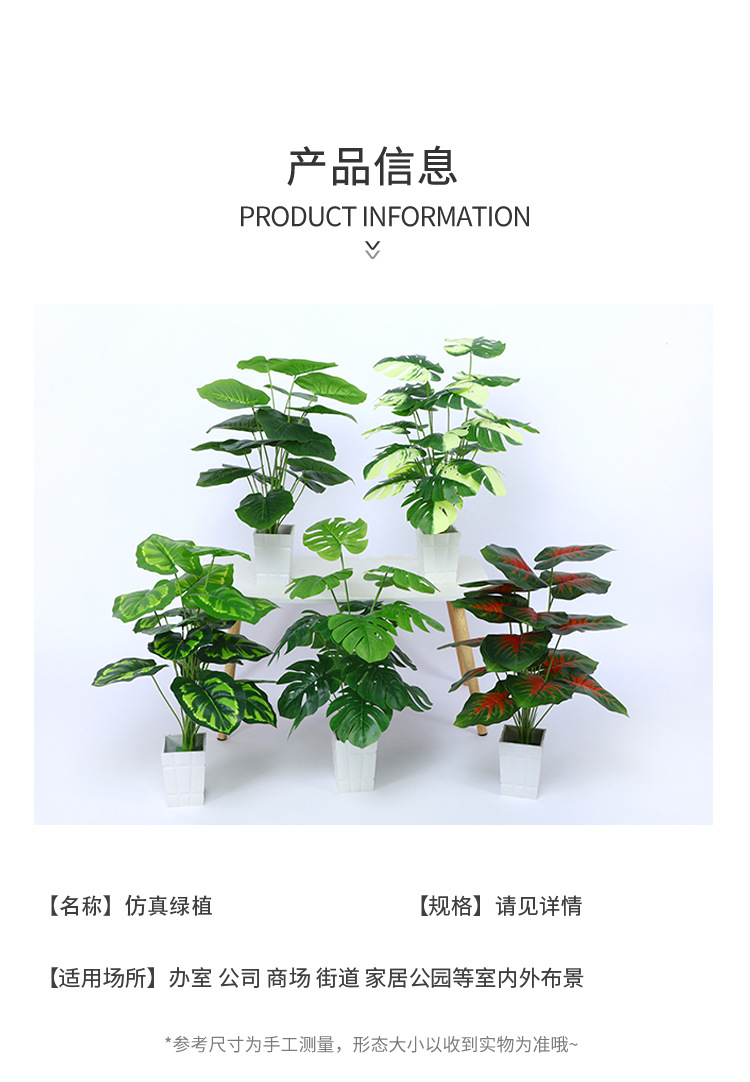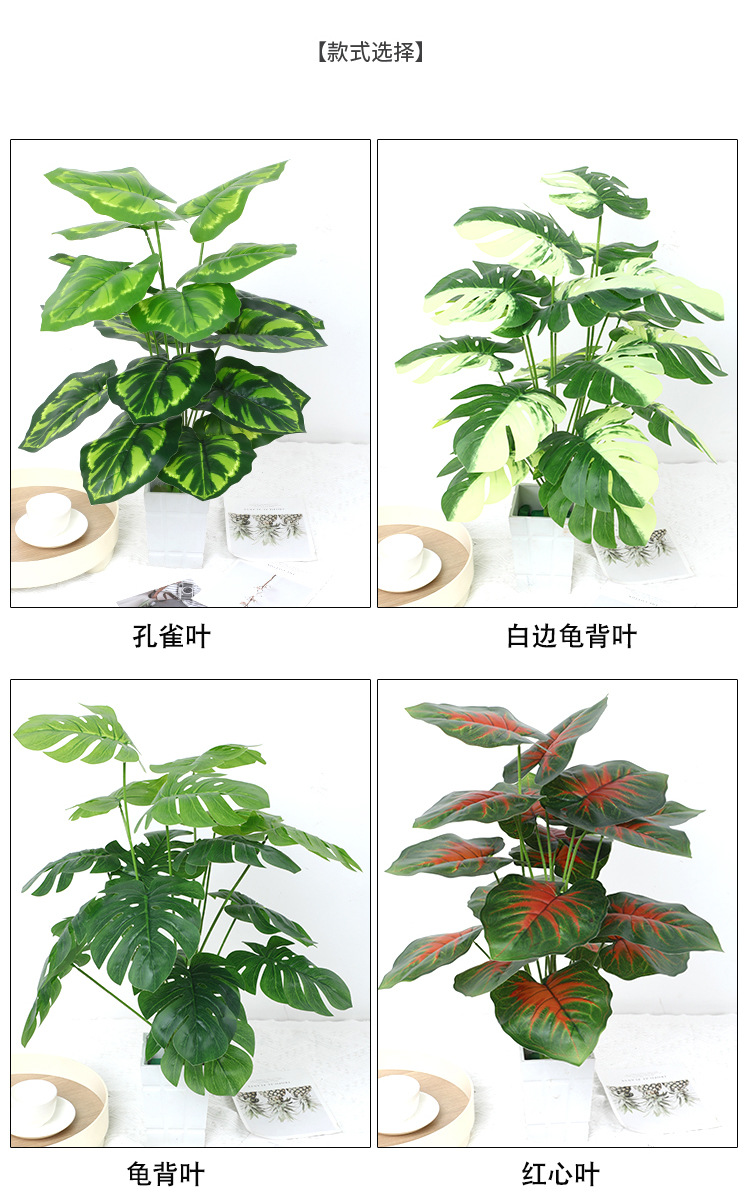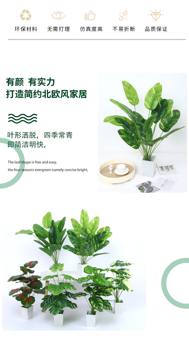 仿真绿植绿萝叶软装假花仿真花盆栽造景北欧风家居装饰摆设龟背叶