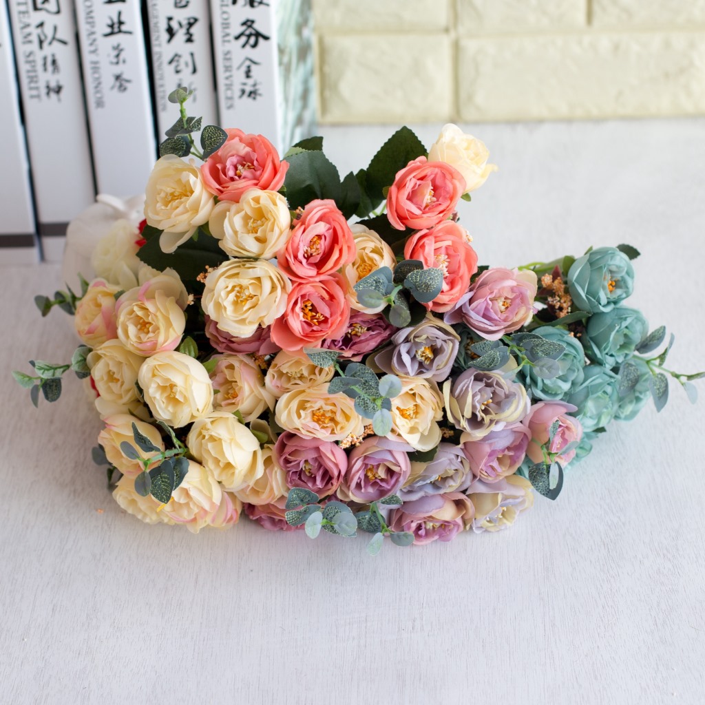 批发欧式 仿真花 10头茶花 爱心茶苞 茶玫 假花塑料花家居装饰
