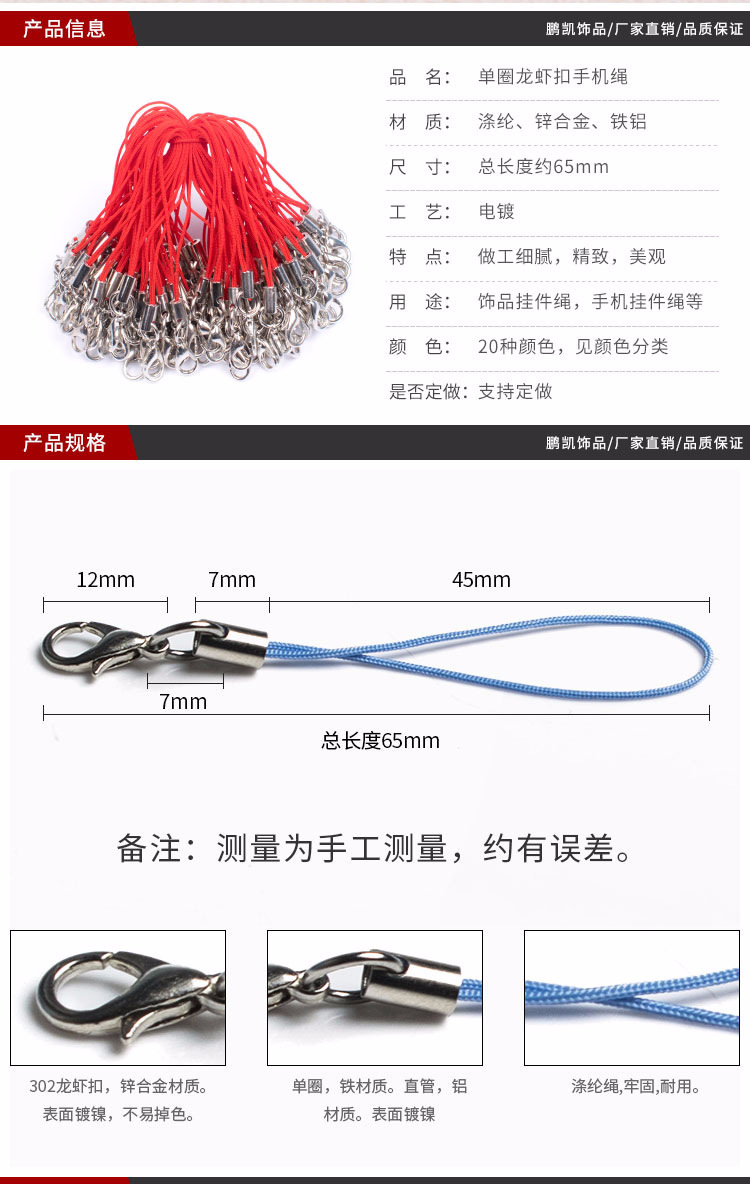 跨境DIY饰品配件20条彩色龙虾扣手机链挂绳手工小饰品钥匙扣挂绳