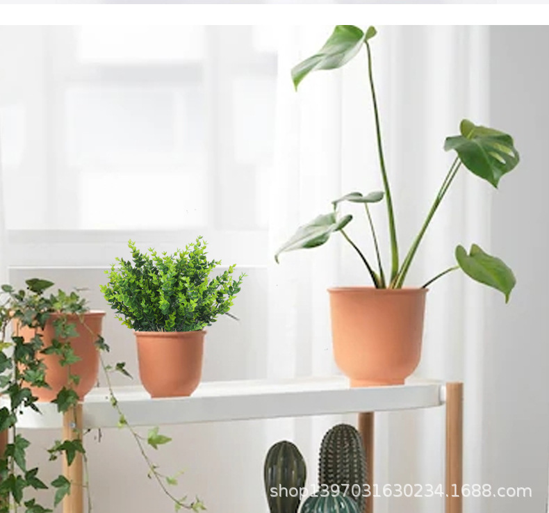 亚马逊仿真绿植塑料花束 家居酒店装饰金钱草 7叉尤加利黄杨木