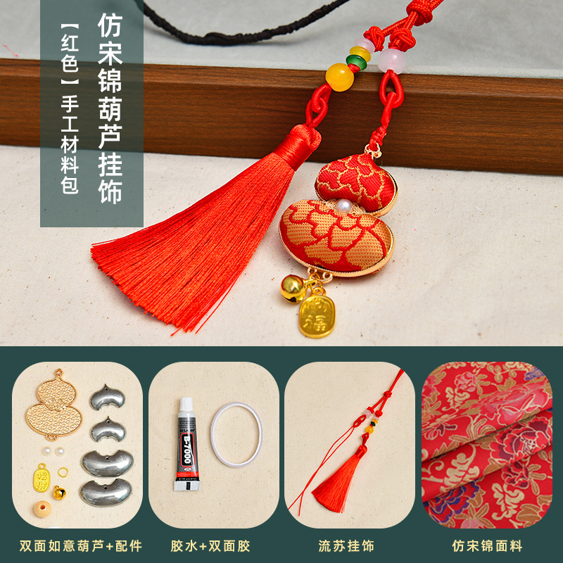宋锦葫芦挂饰材料包吊坠底胚配件手工DIY车挂件伴手礼摆摊小礼物