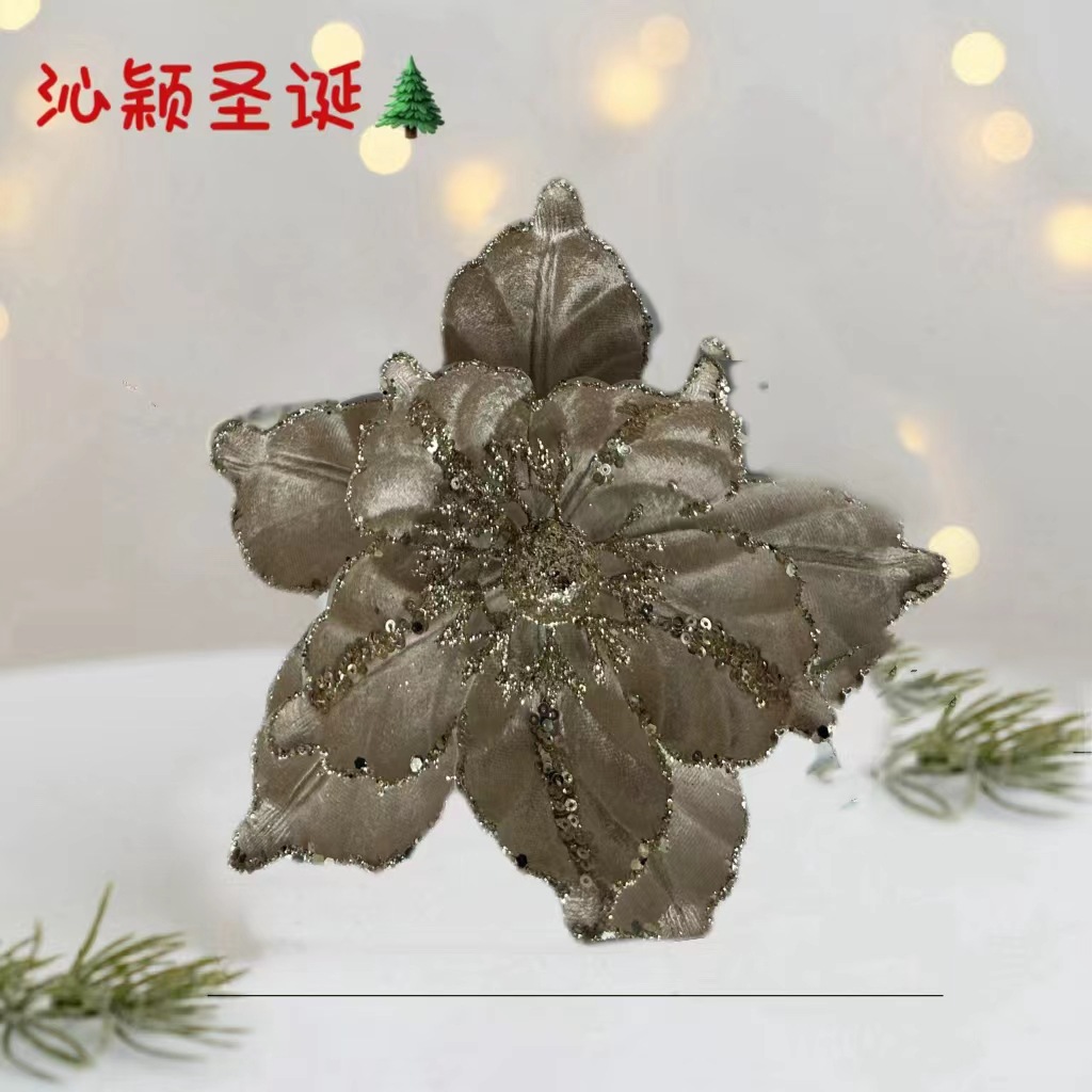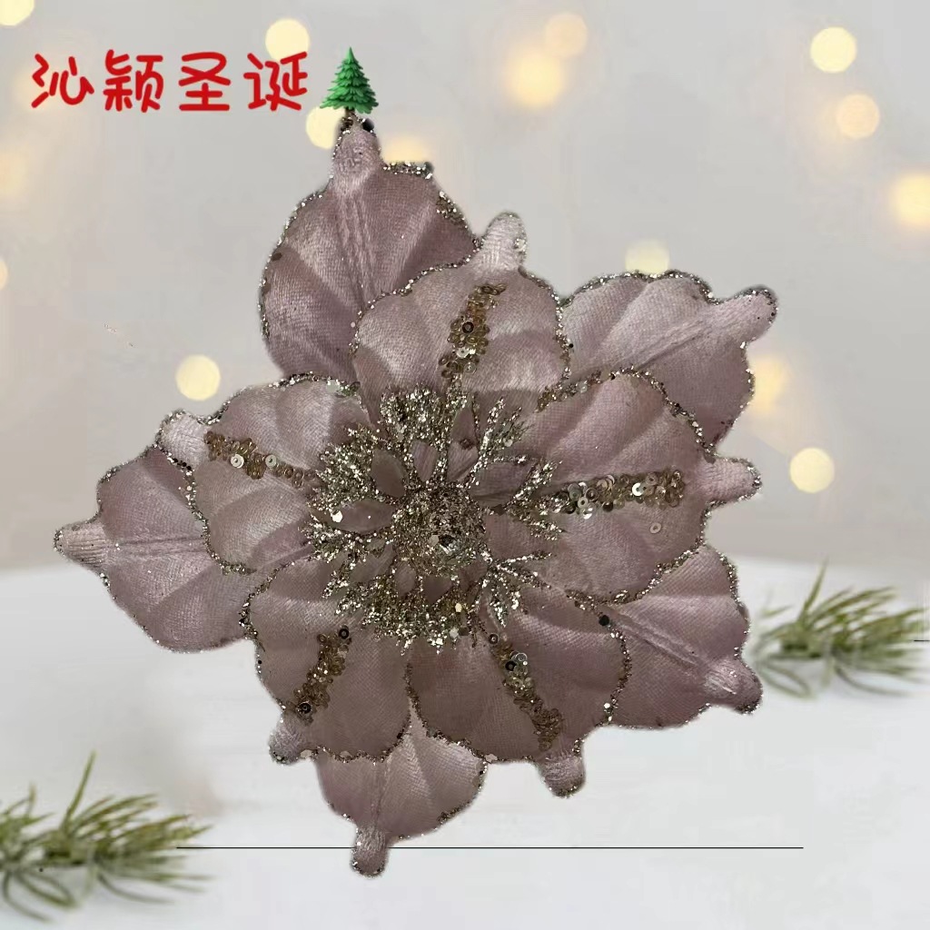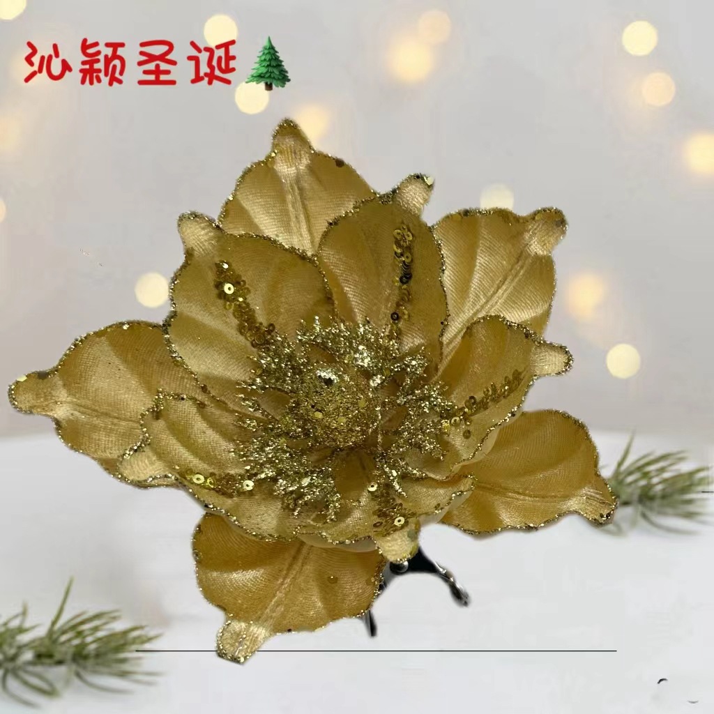 圣诞花双层亮片玉兰花圣诞装饰品仿真圣诞树装饰圣诞节装饰品