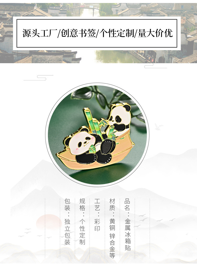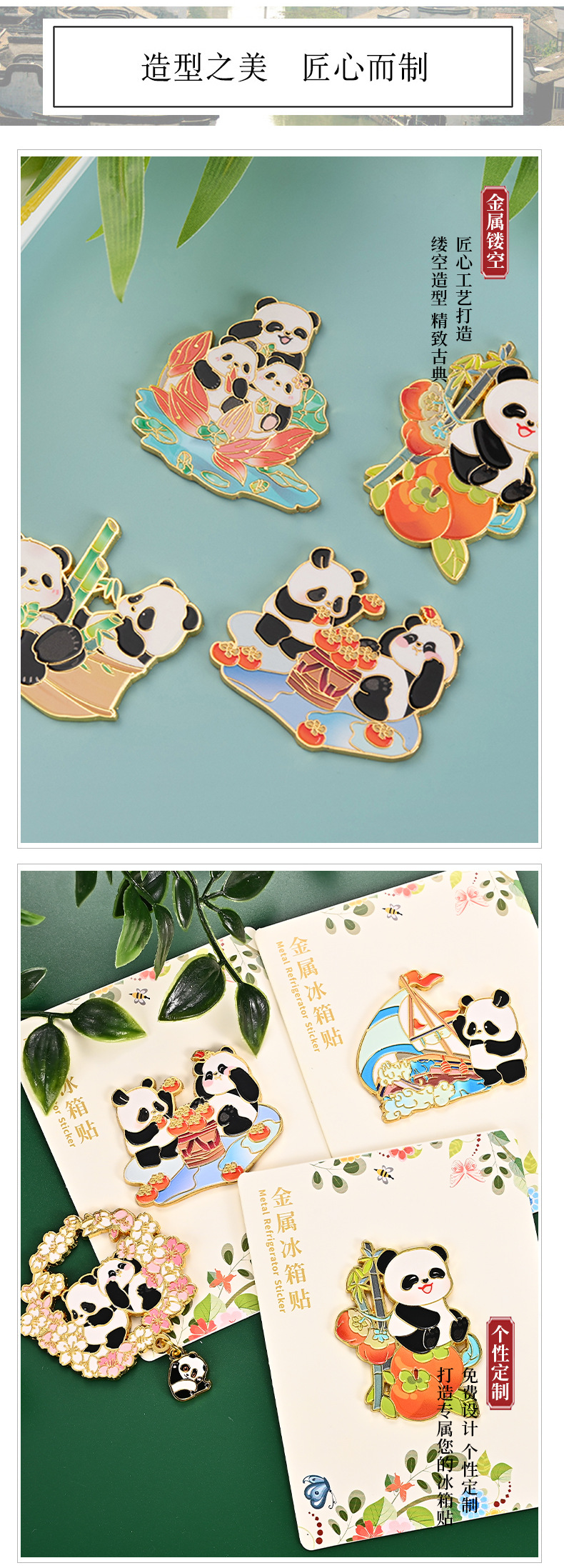 国风熊猫金属冰箱贴 新款磁吸愽物馆旅游景区纪念 创意礼品冰箱贴