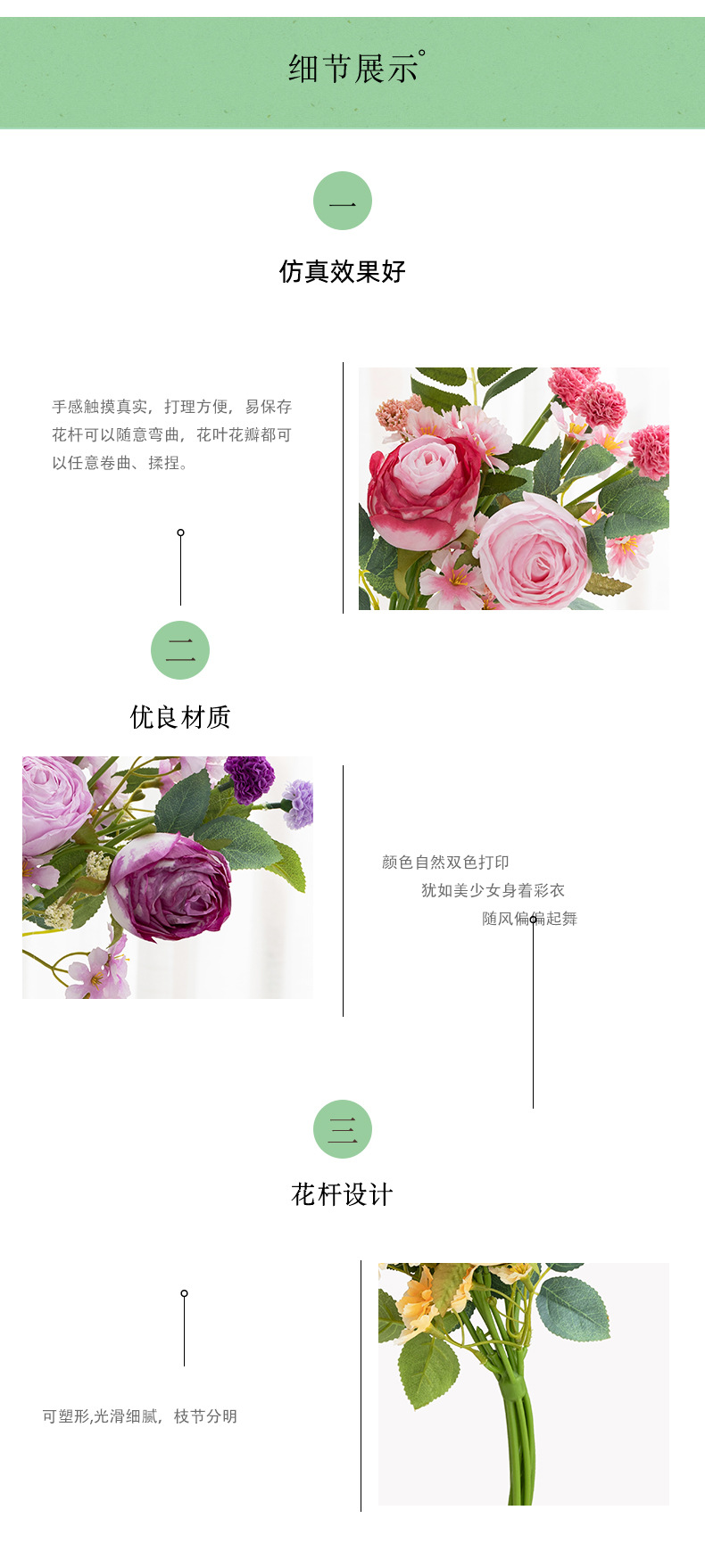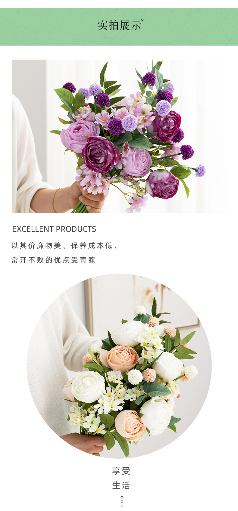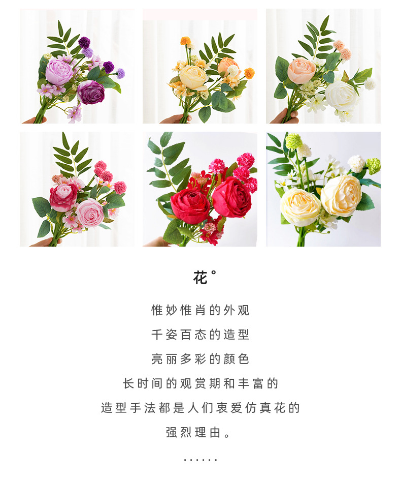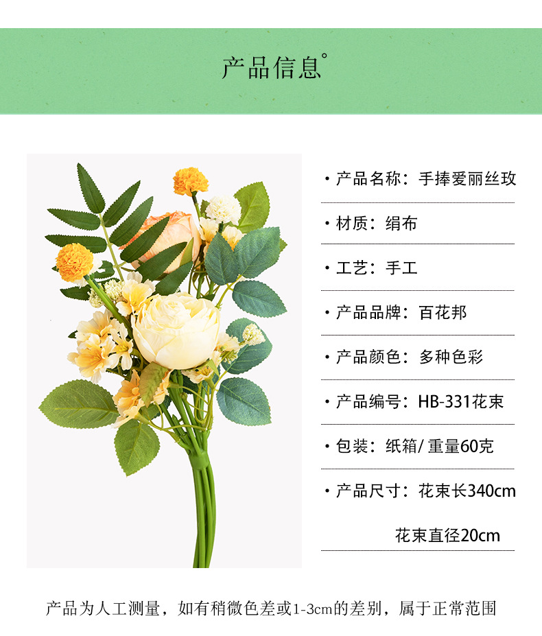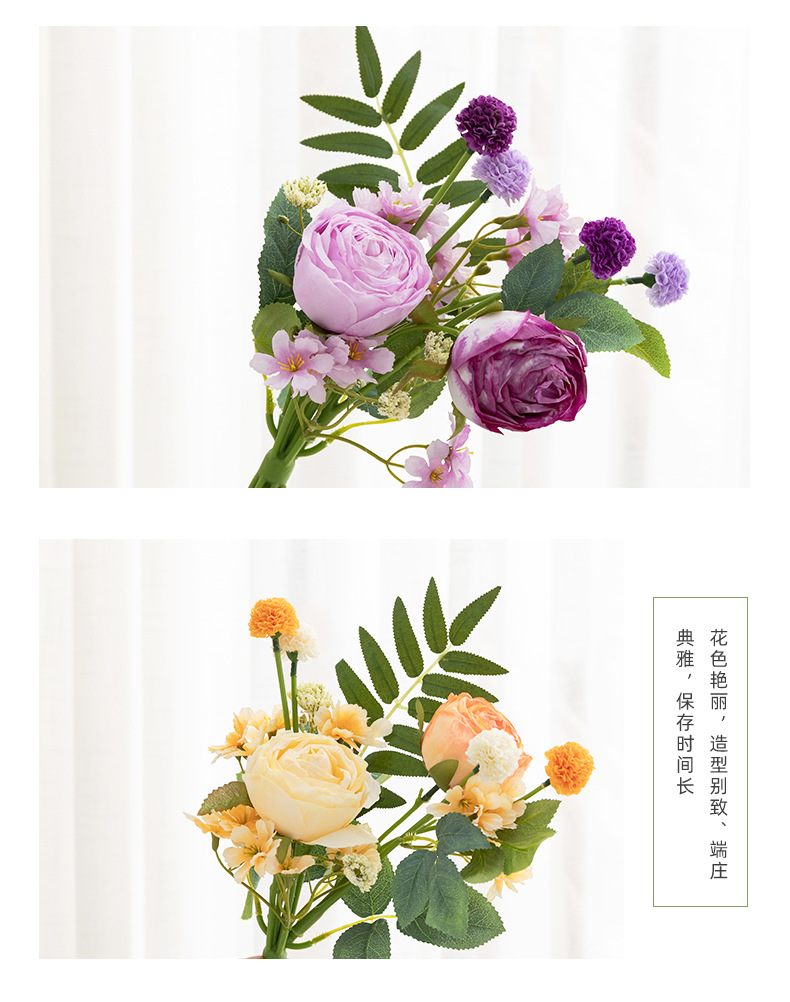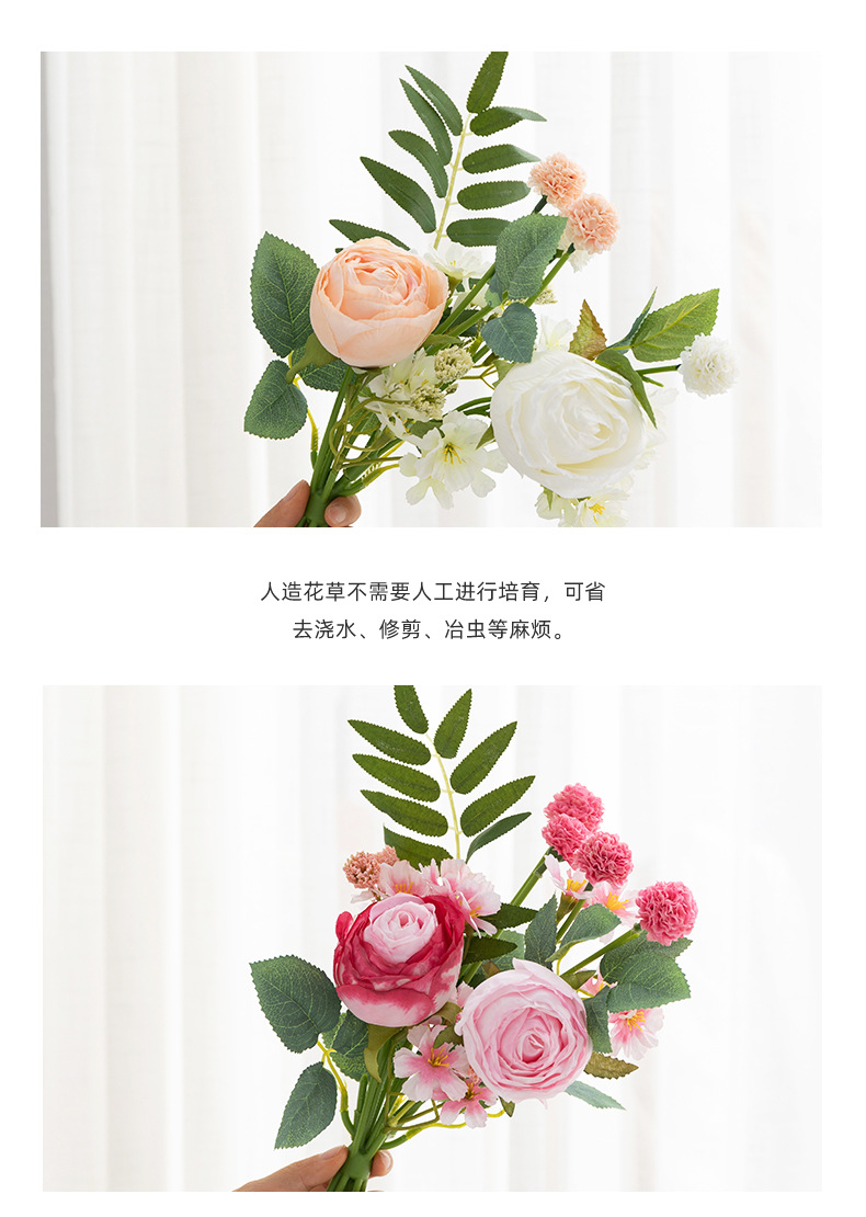 婚礼仿真花束客厅摆件塑料假花插花婚庆手捧花仿真花焦边玫瑰装饰