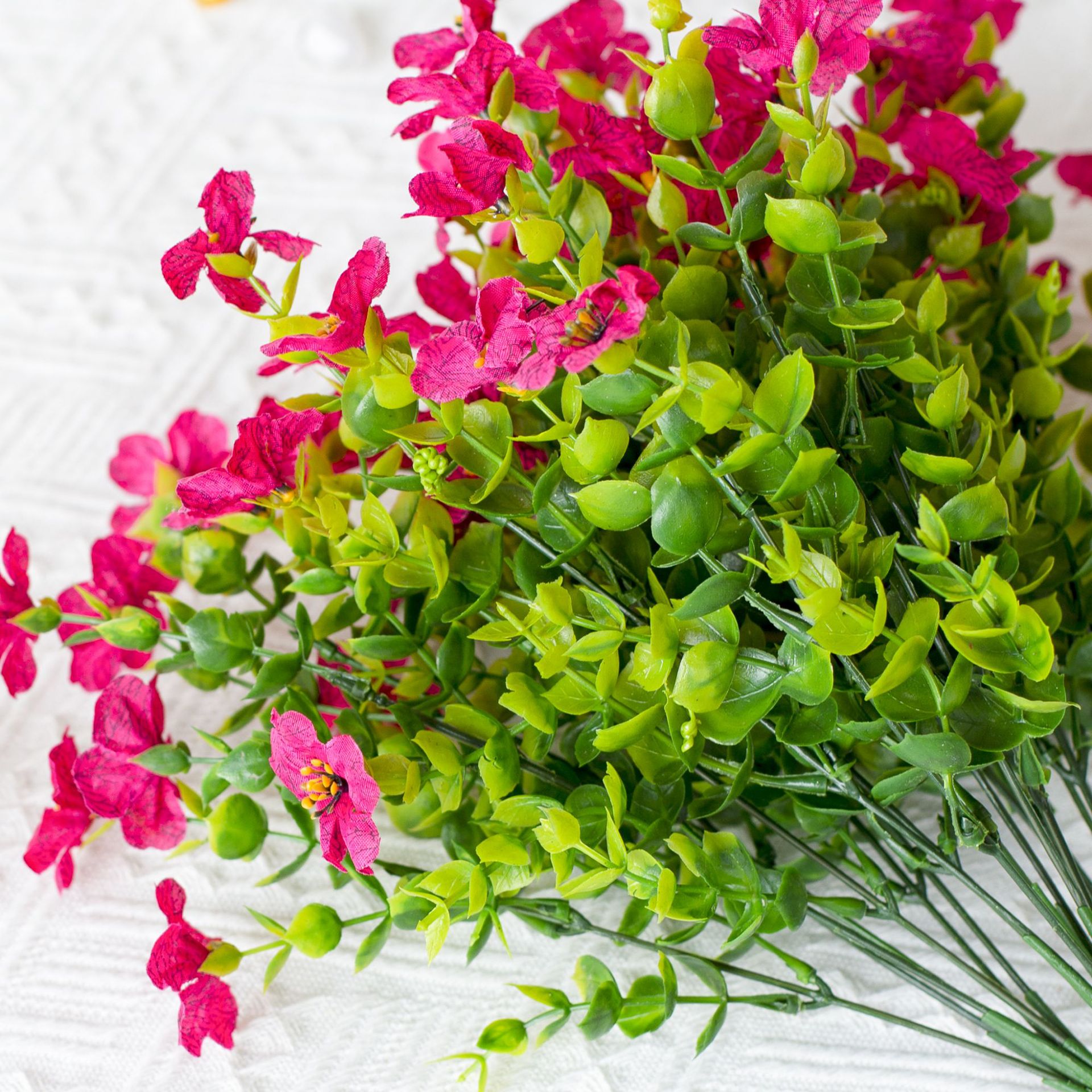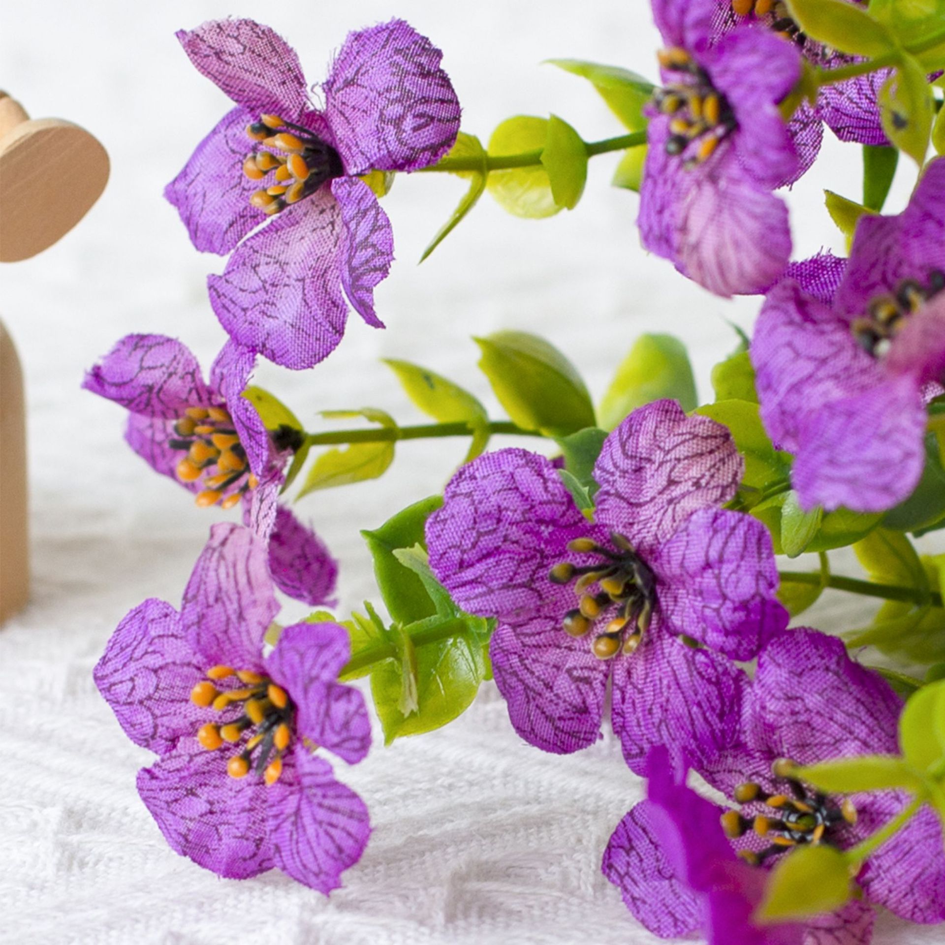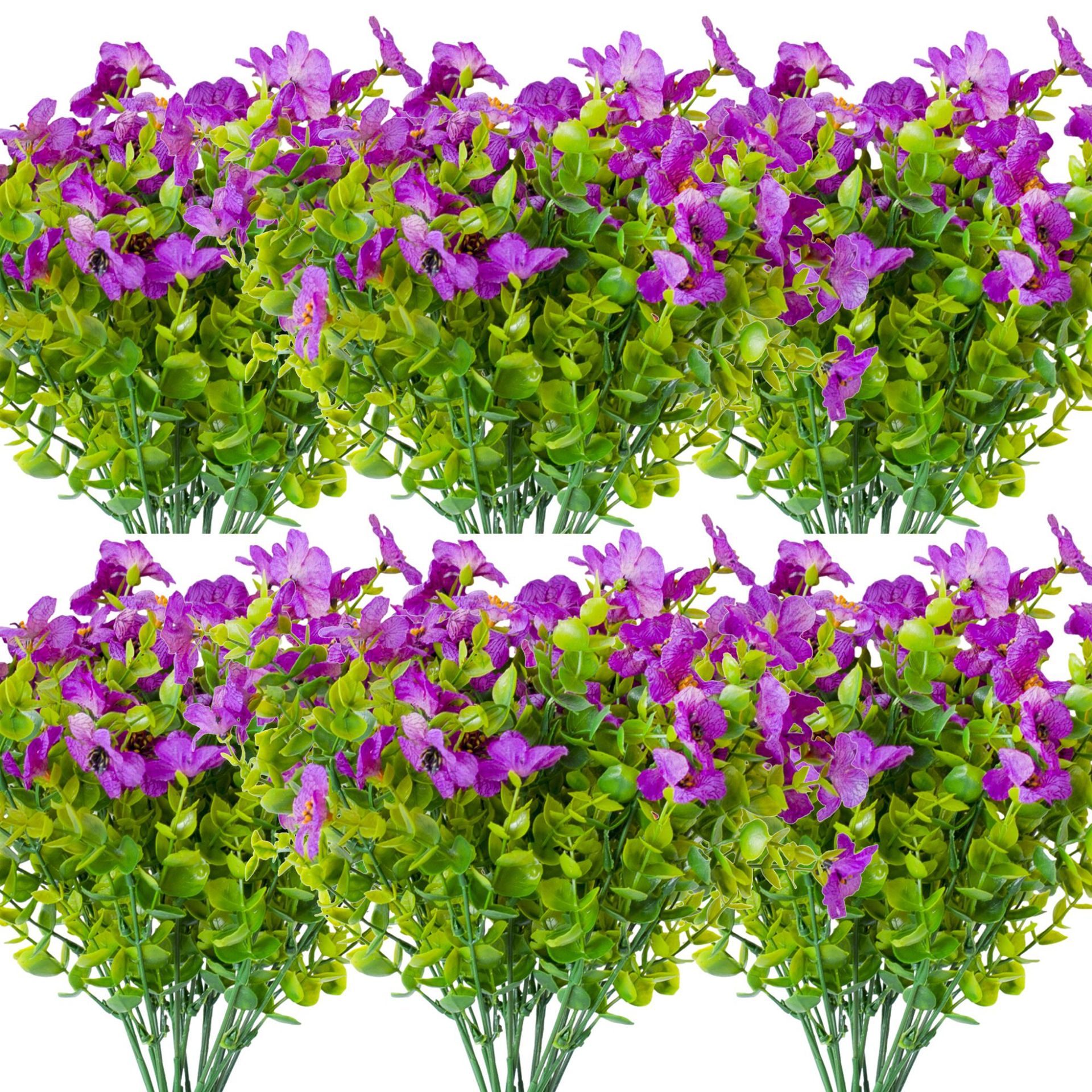 亚马逊跨境7叉桉树尤加利紫罗兰 仿真植物人造塑料花家居插花装饰