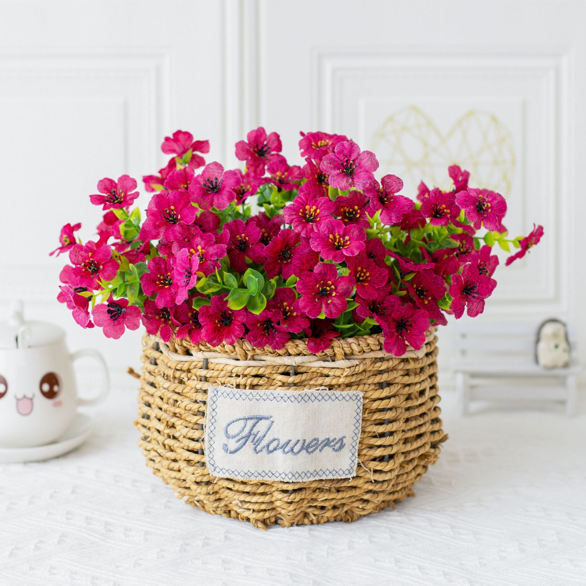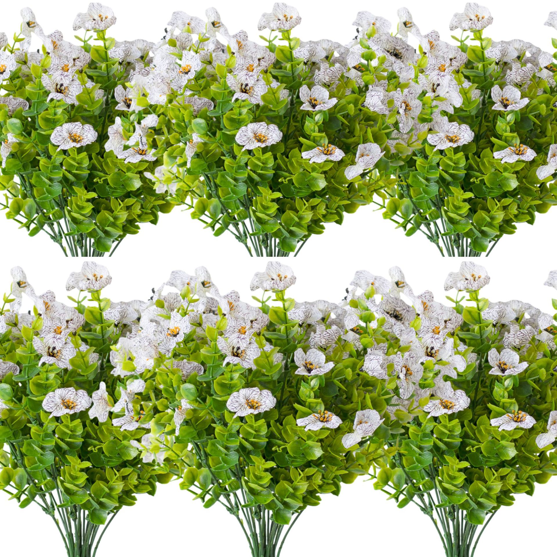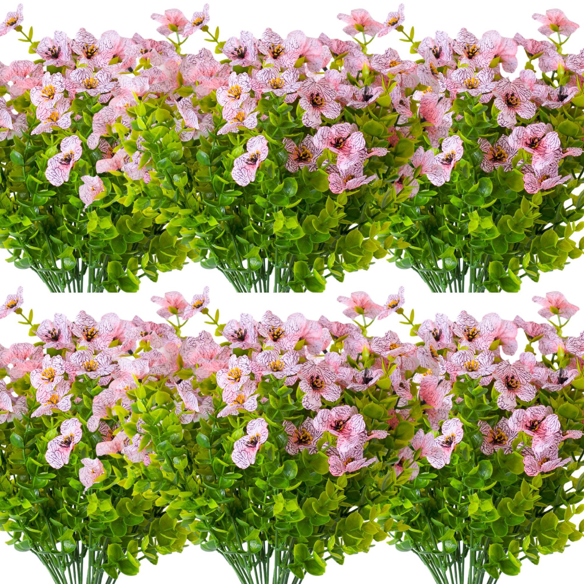 亚马逊跨境7叉桉树尤加利紫罗兰 仿真植物人造塑料花家居插花装饰