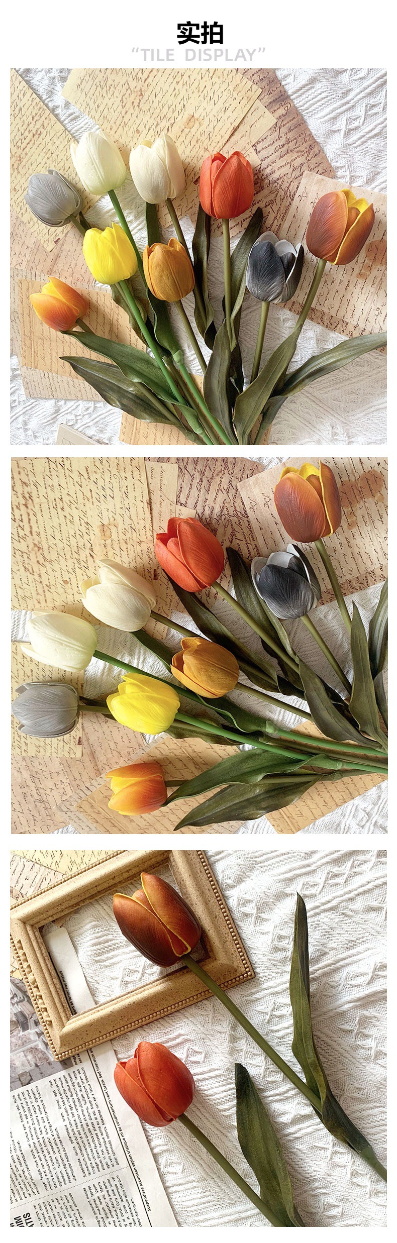 莫兰迪轻奢郁金香单只假花PU仿真花束婚庆酒店装饰新娘手捧花批发