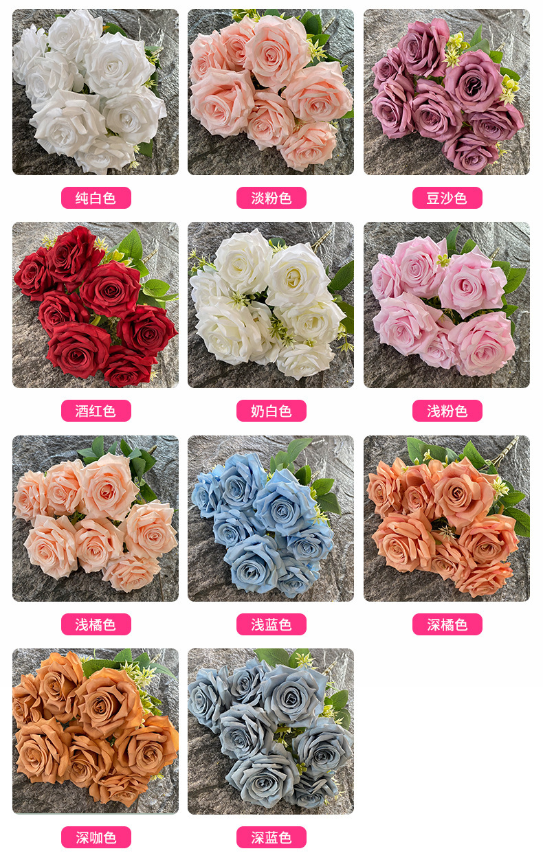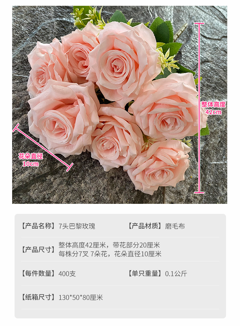 磨毛布7头巴黎玫瑰 婚庆酒店装饰家居路引把束假花 仿真玫瑰花束