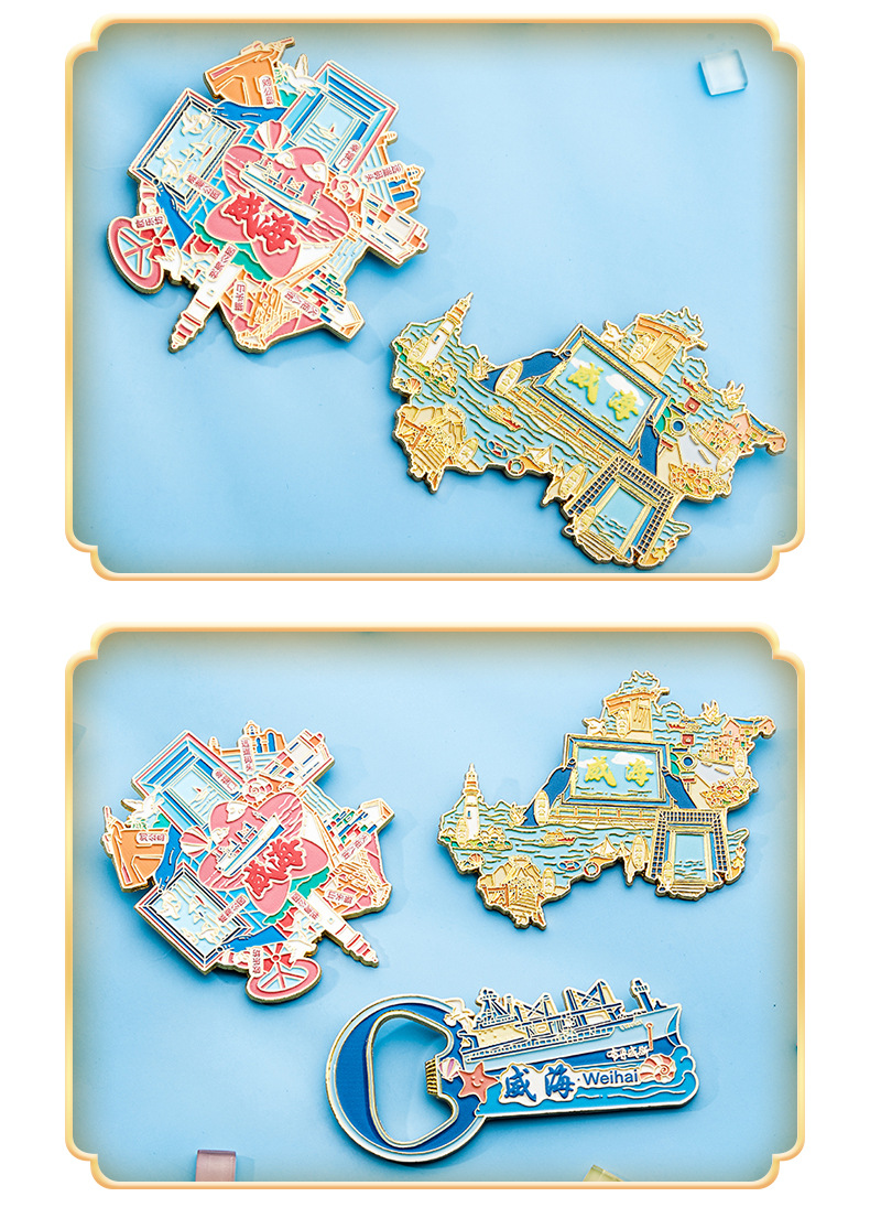 威海冰箱贴金属滴胶磁贴卡通可爱文创logo软磁磁吸纪念品磁性贴