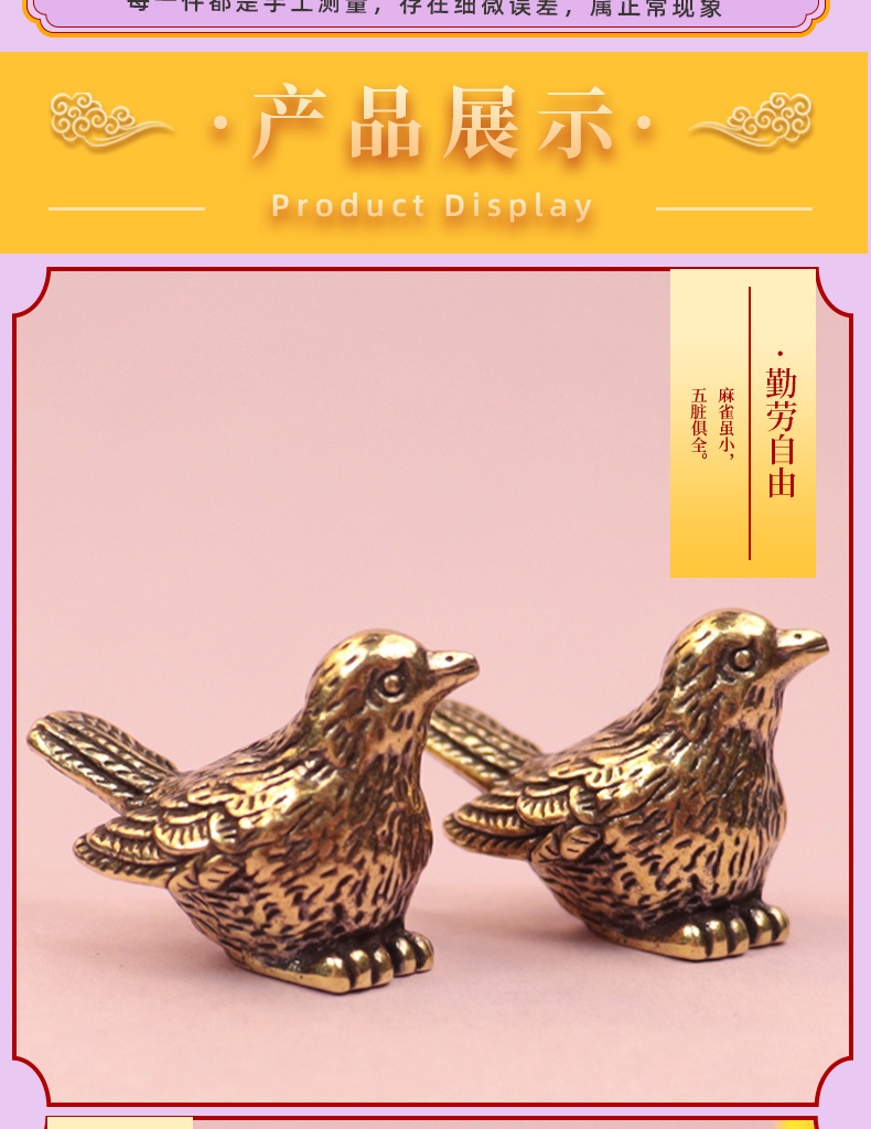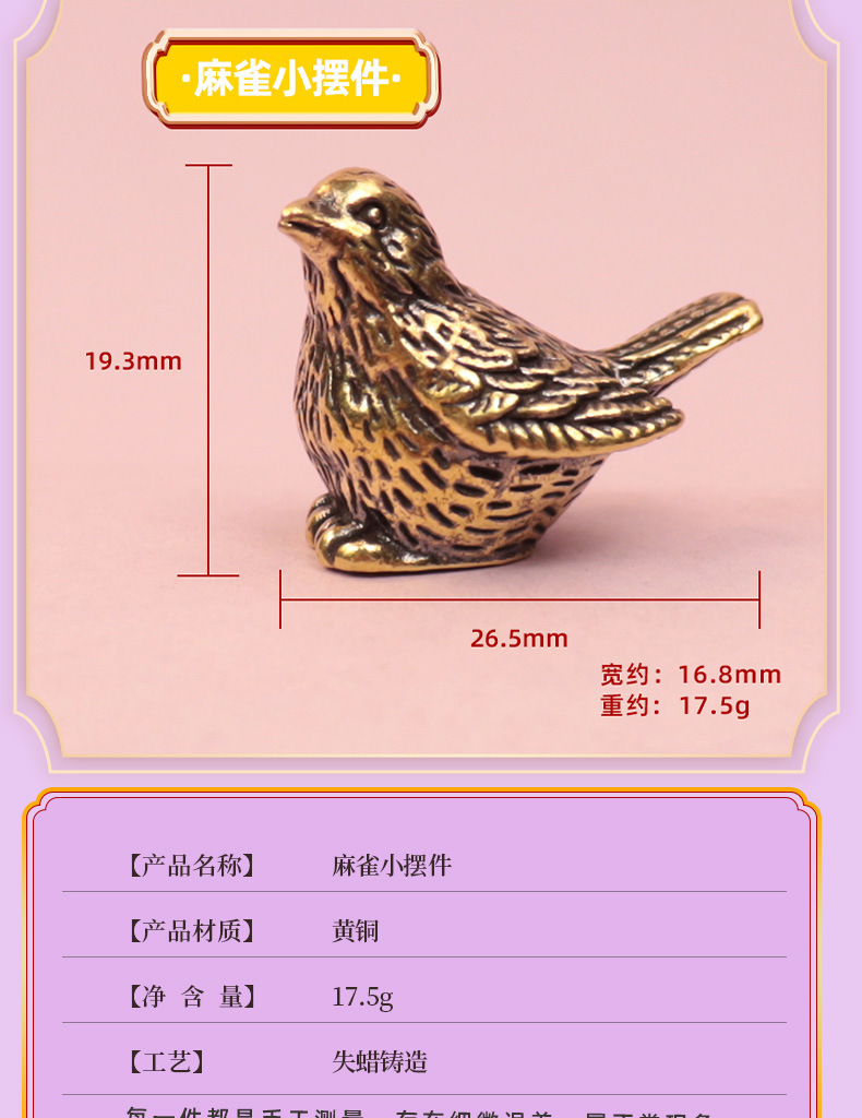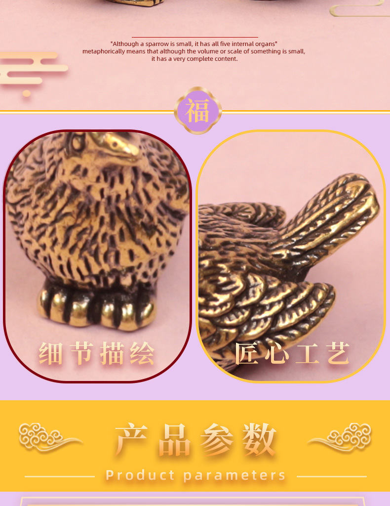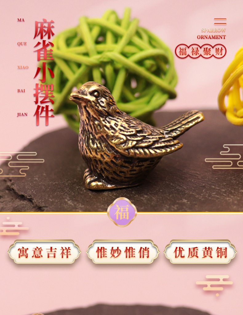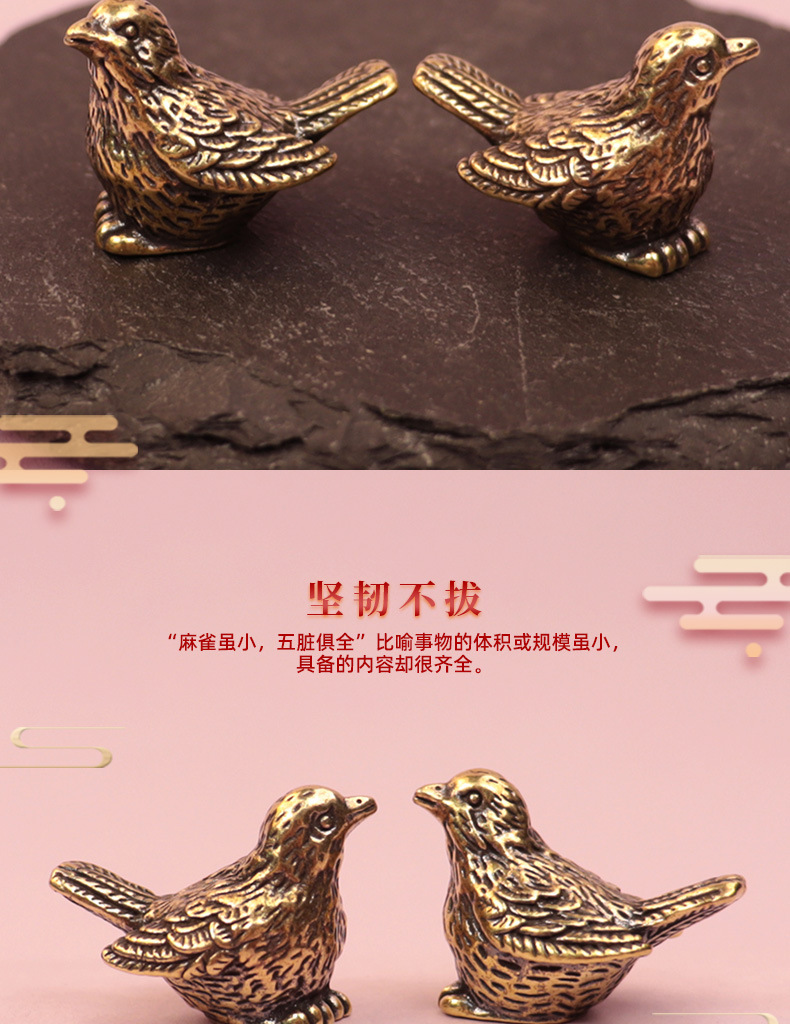 黄铜麻雀小摆件金属工艺品创意微景观摆件文玩摆设中秋节小件礼物