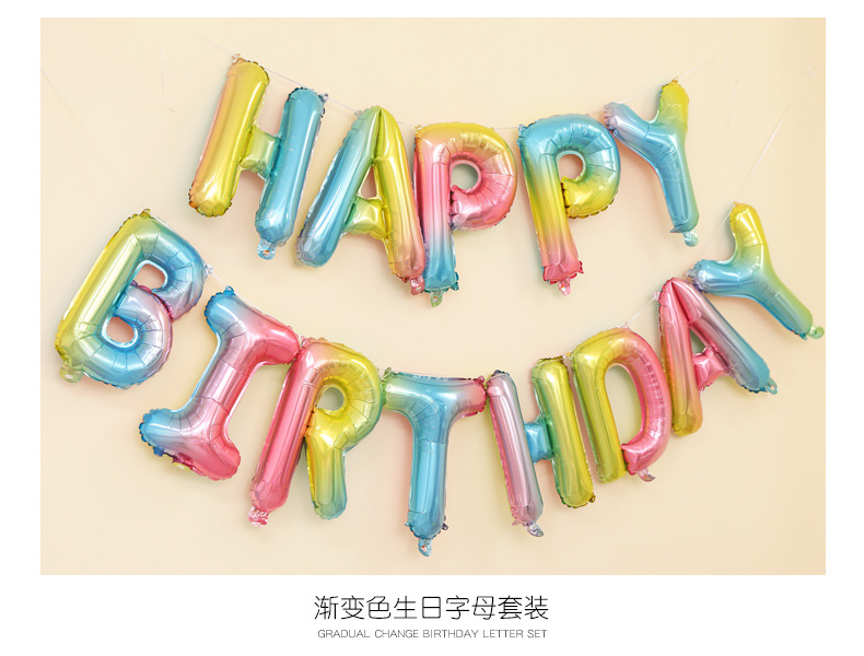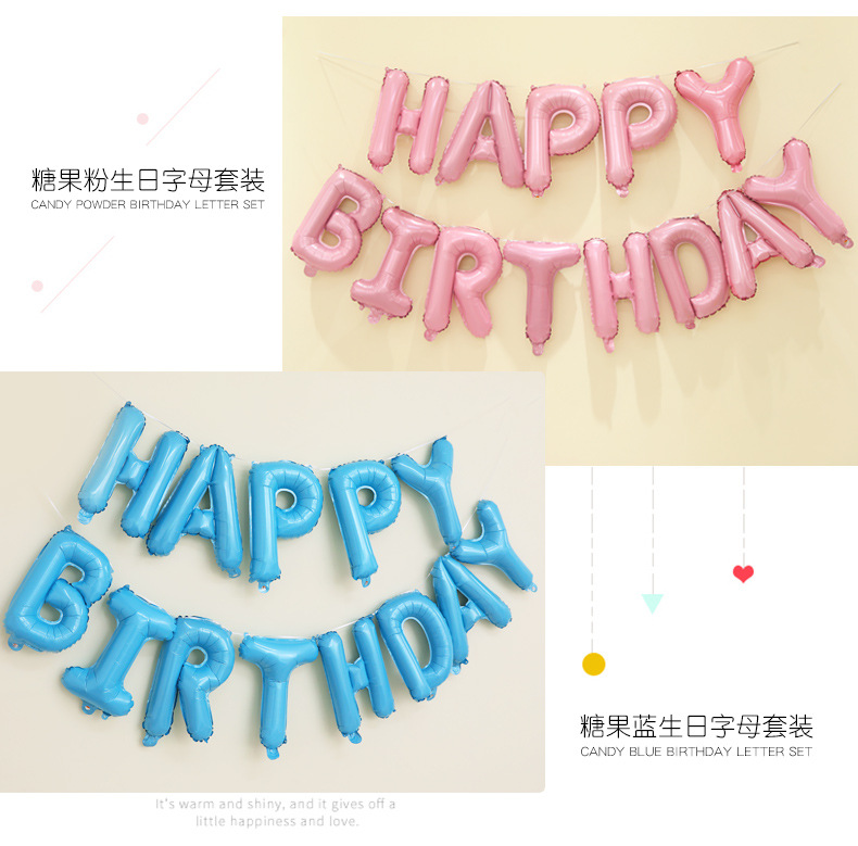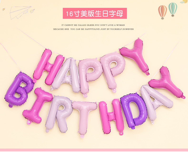 16寸生日快乐字母套装happybirthday铝膜气球挂饰挂件铝箔球庆典