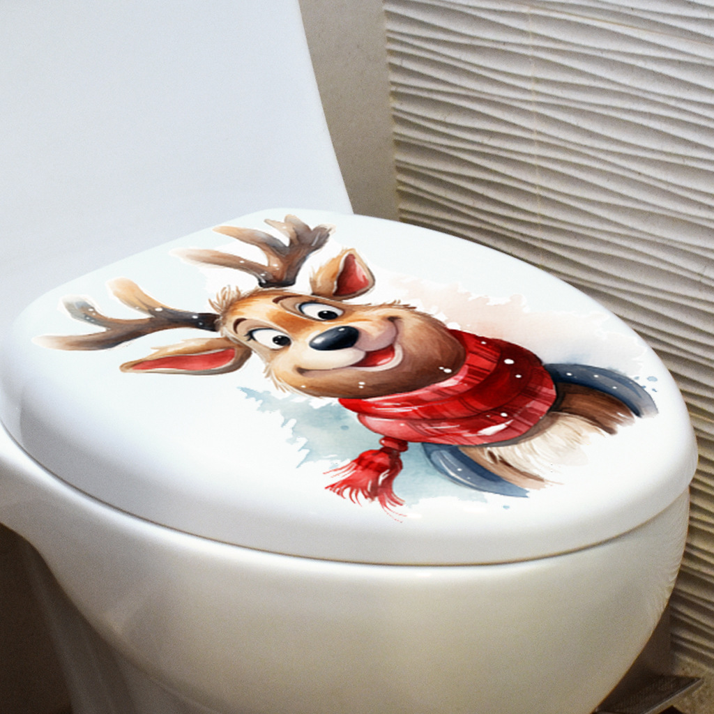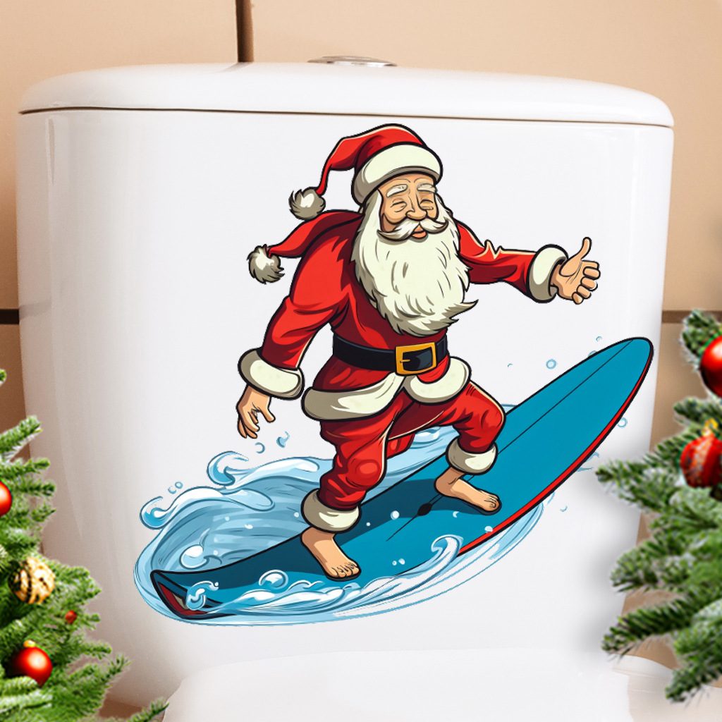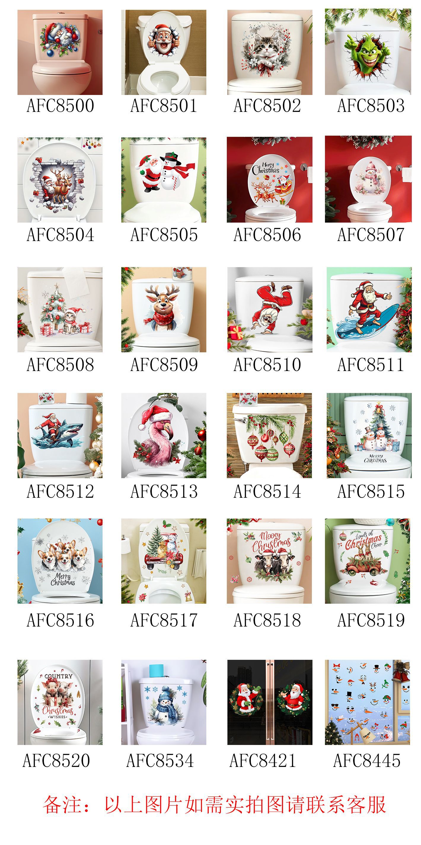 奥弗圣诞老人PVC马桶贴纸 AFC8507跨境自粘卫生间圣诞节装饰墙贴