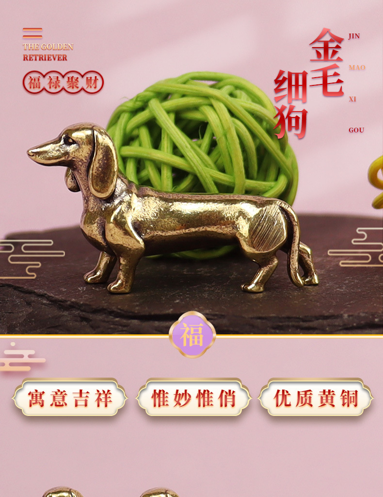 金毛狗黄铜摆件文创市集小工艺品摆件家居客厅装饰品景区摆摊热销