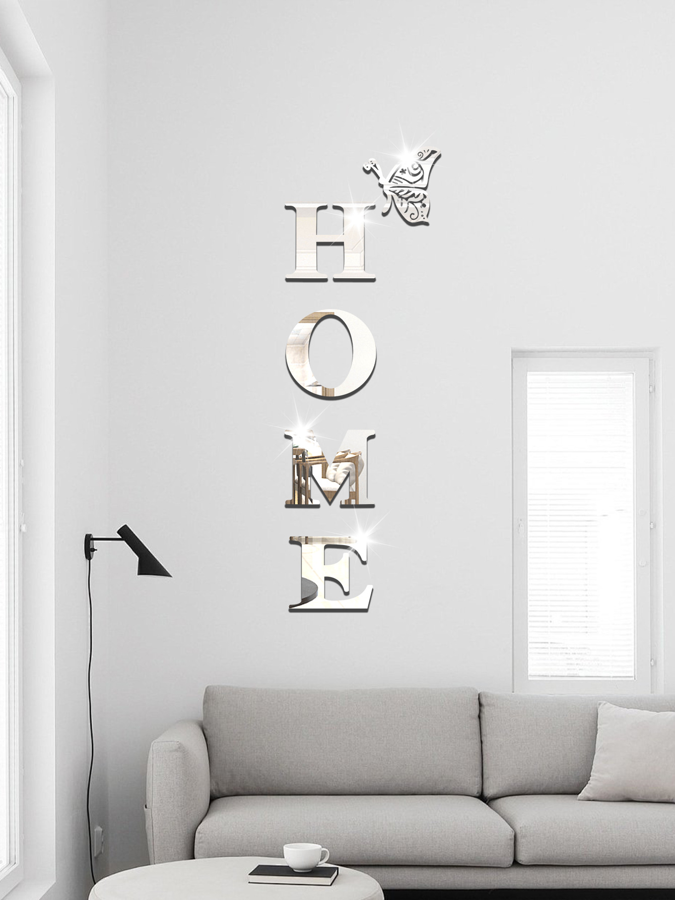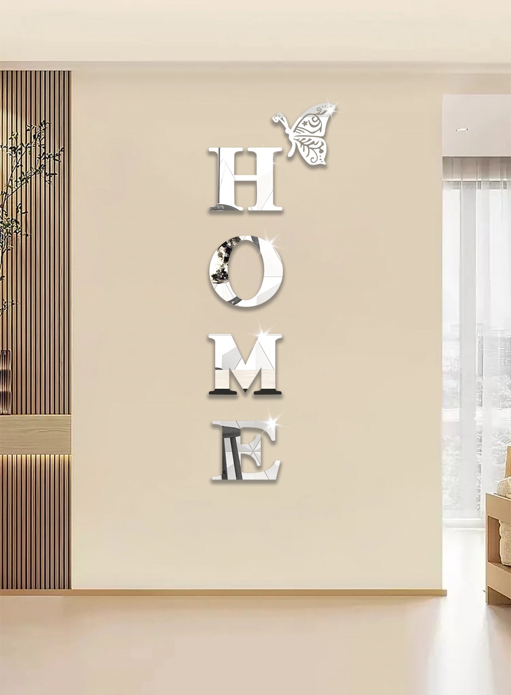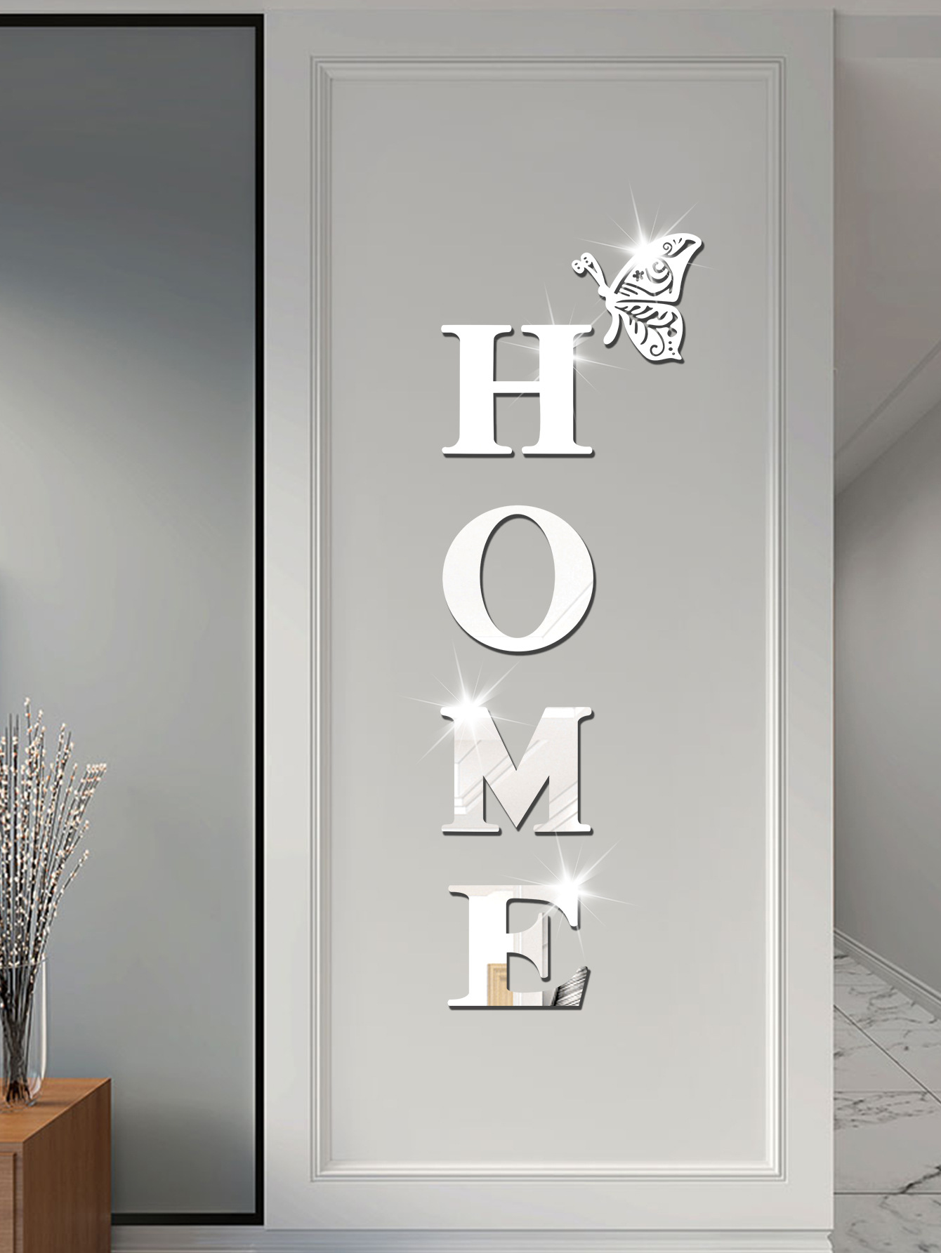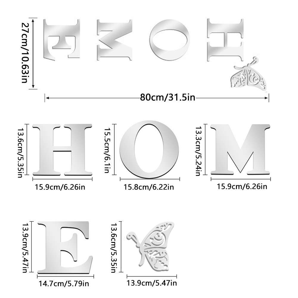 跨境专供亚克力镜面墙贴HOME蝴蝶多边形自粘带背胶组合装饰软镜子
