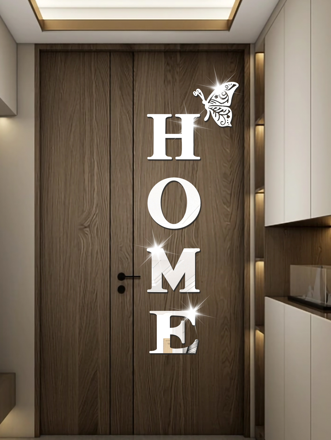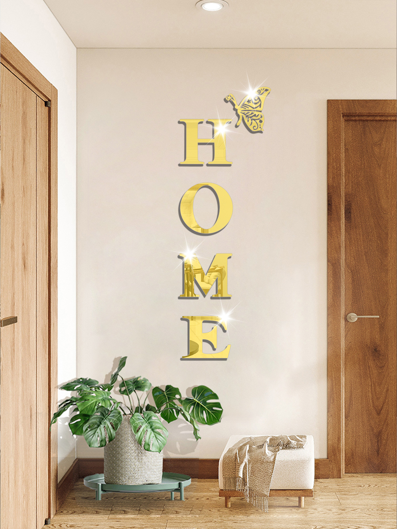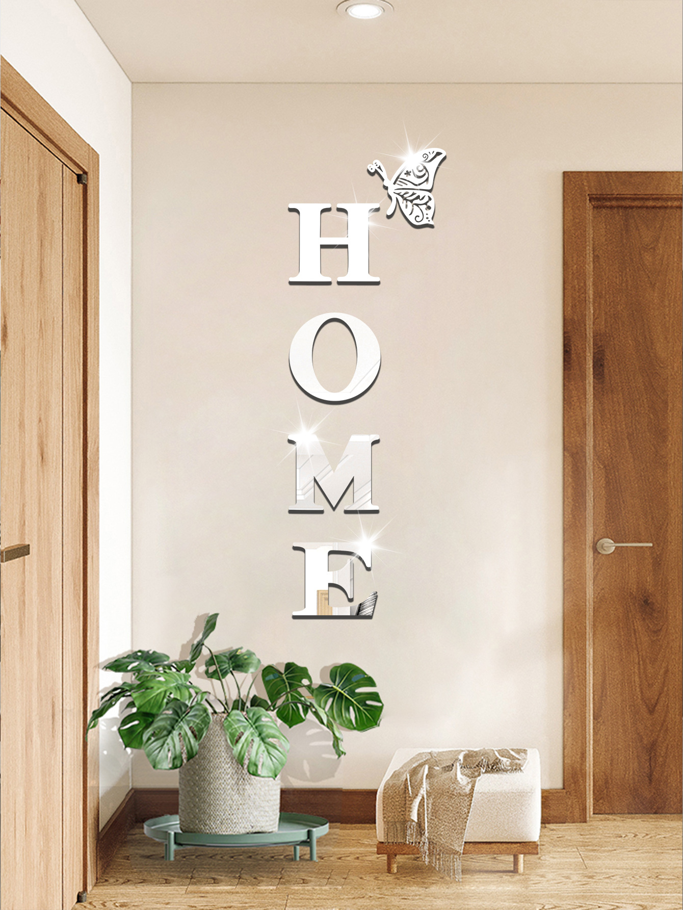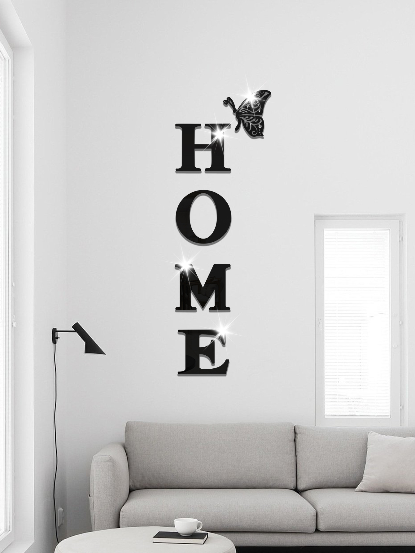 跨境专供亚克力镜面墙贴HOME蝴蝶多边形自粘带背胶组合装饰软镜子