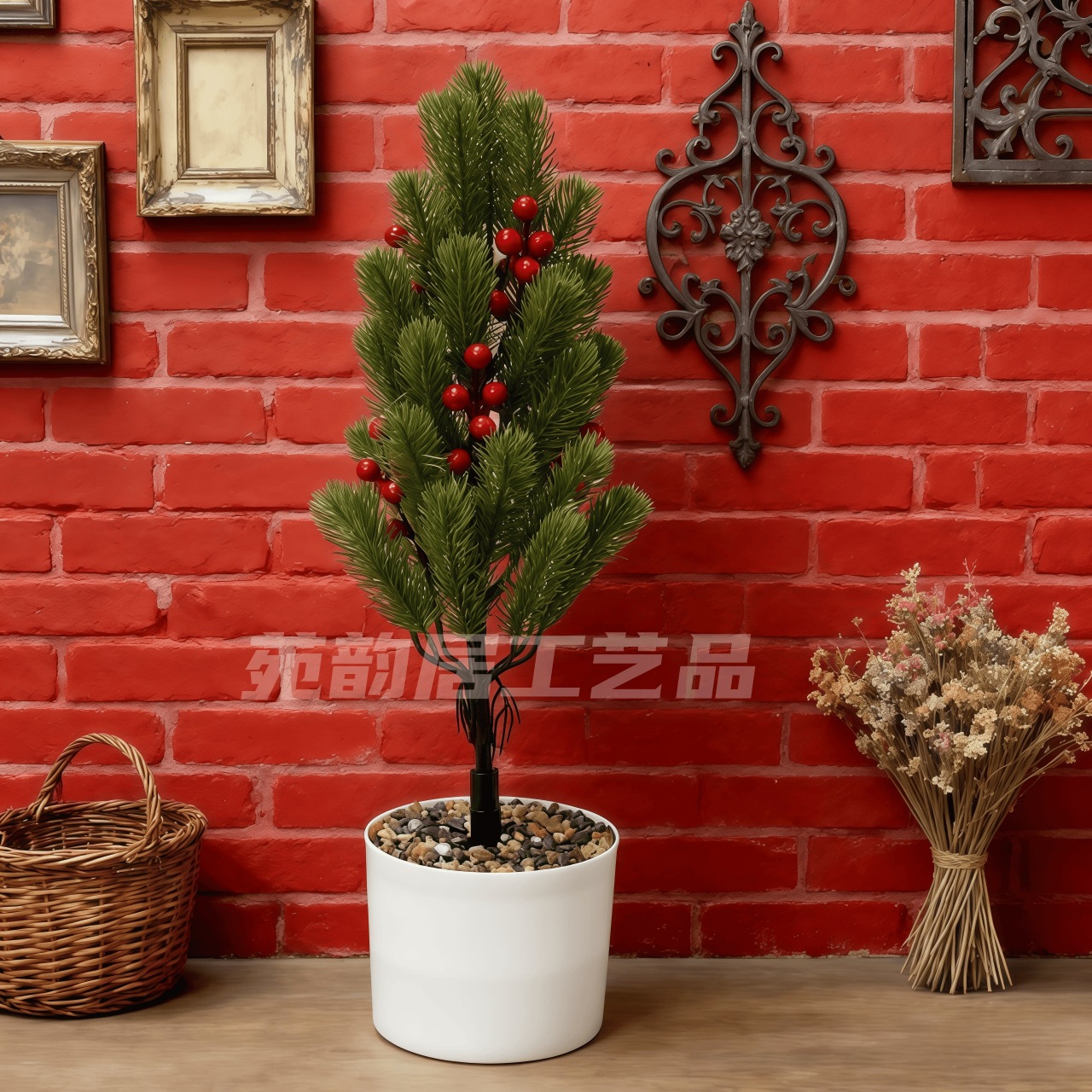 仿真圣诞松针圣诞节庭院装饰客厅摆件,户外人造仿真绿植,不含盆