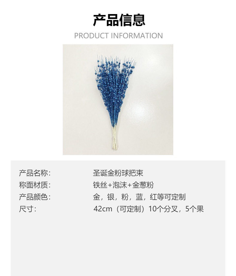 圣诞节装饰品金粉球圣诞树插枝金粉亮片闪光浆果把束批发节日气氛